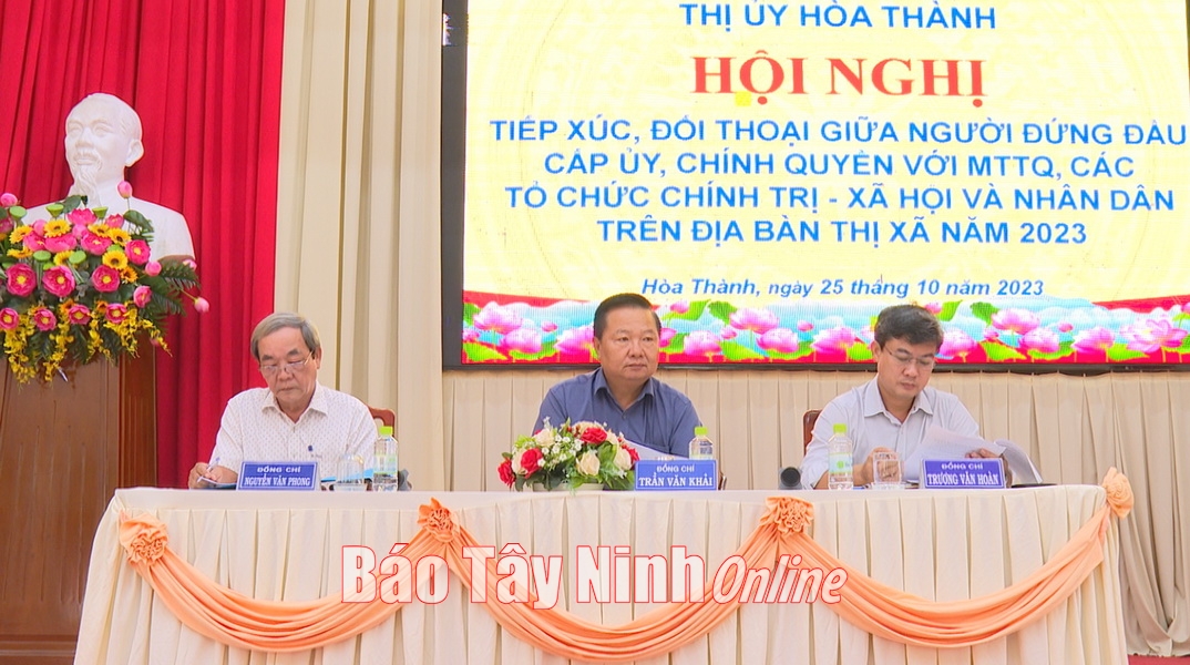 Chiều 25.10, Thị ủy Hoà Thành tổ chức hội nghị tiếp xúc, đối thoại trực tiếp giữa người đứng đầu cấp ủy, chính quyền với Mặt trận tổ quốc, các tổ chức chính trị- xã hội và nhân dân trên địa bàn năm 2023.