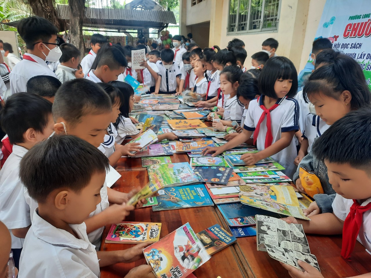 Tại “Ngày hội đọc sách”, có gần 300 đầu sách, báo các loại như: Truyện tranh, truyện cổ tích, truyện lịch sử, sách kĩ năng sống, sách lịch sử, … được trưng bày phục vụ cho các em học sinh từ lớp 1 đến lớp 5.