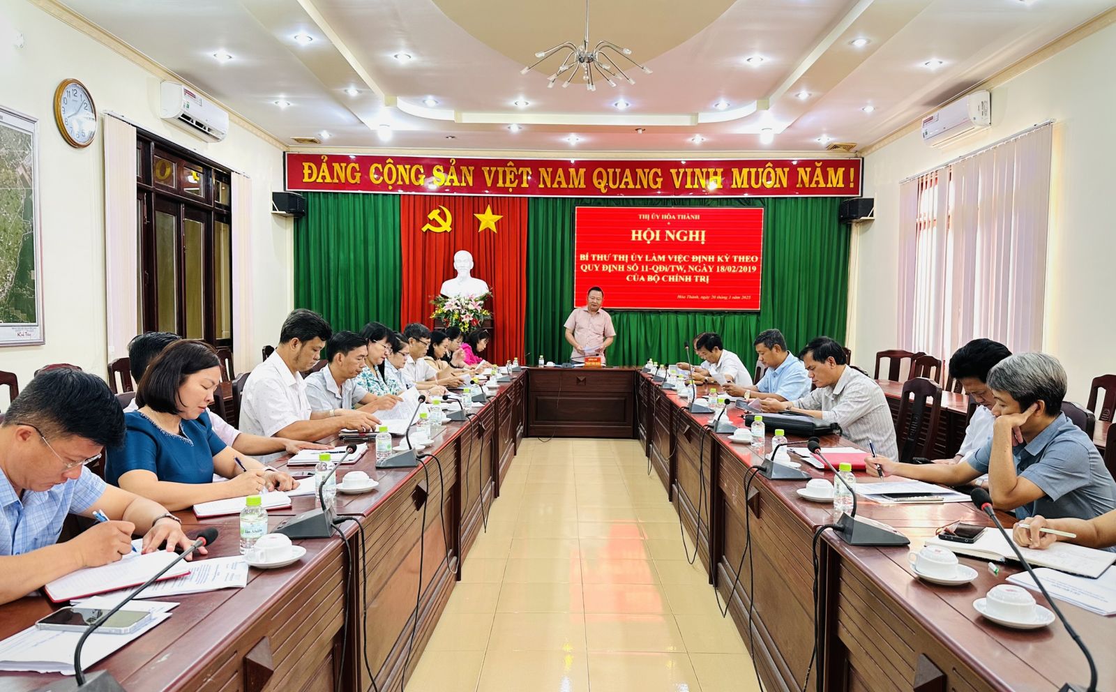 Sáng 20.3, Bí thư Thị uỷ Hoà Thành Trần Văn Khải chủ trì hội nghị giao ban thực hiện Quy định số 11-QĐi/TW, ngày 18.2.2019 của Bộ Chính trị quy định về trách nhiệm của người đứng đầu cấp uỷ trong việc tiếp dân, đối thoại trực tiếp với dân và xử lý những phản ánh, kiến nghị của dân quý I.2025.