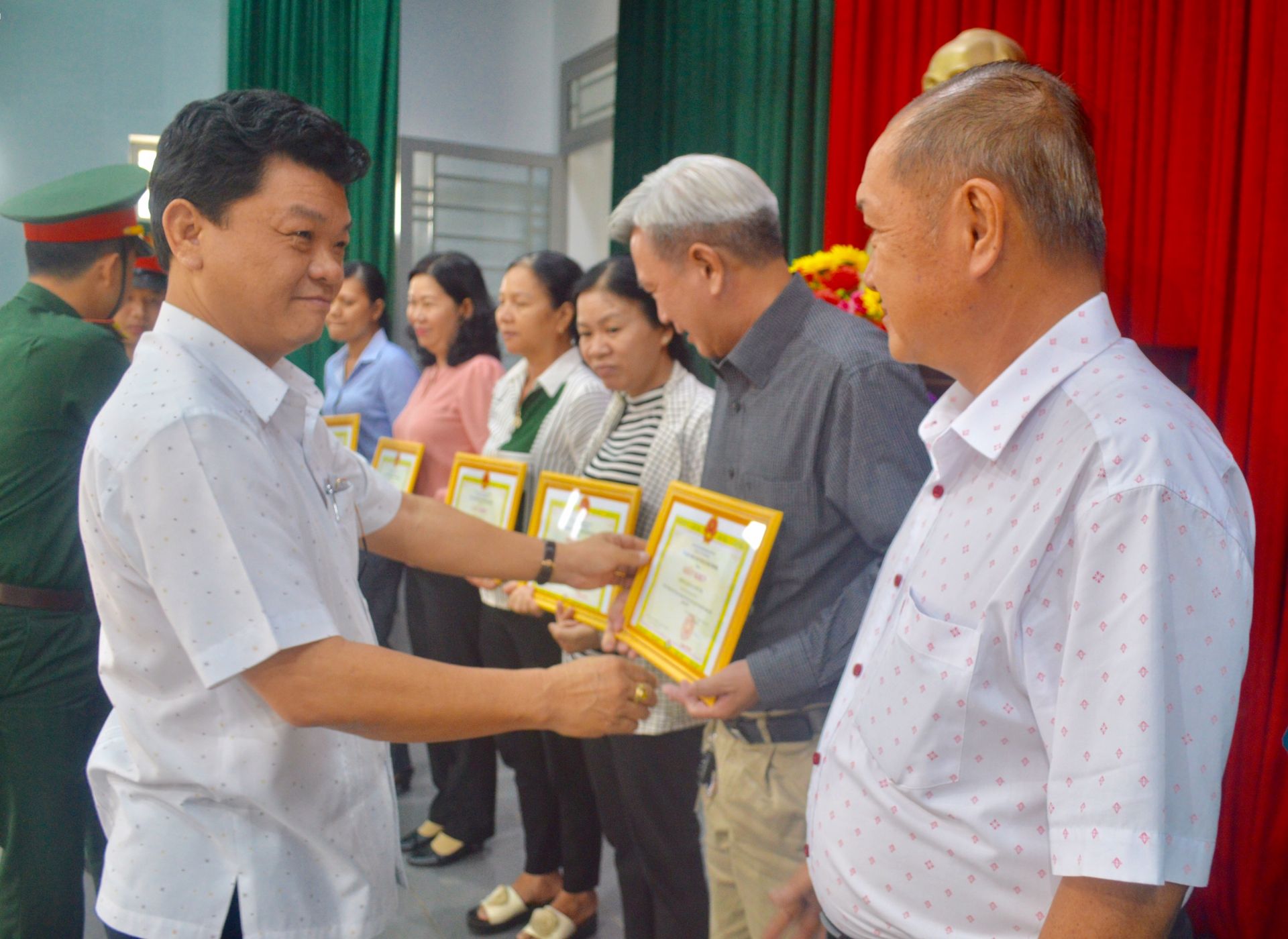 Chủ tịch UBND Thị xã Hòa Thành Trương Văn Hoàn trao thưởng cho các cá nhân.