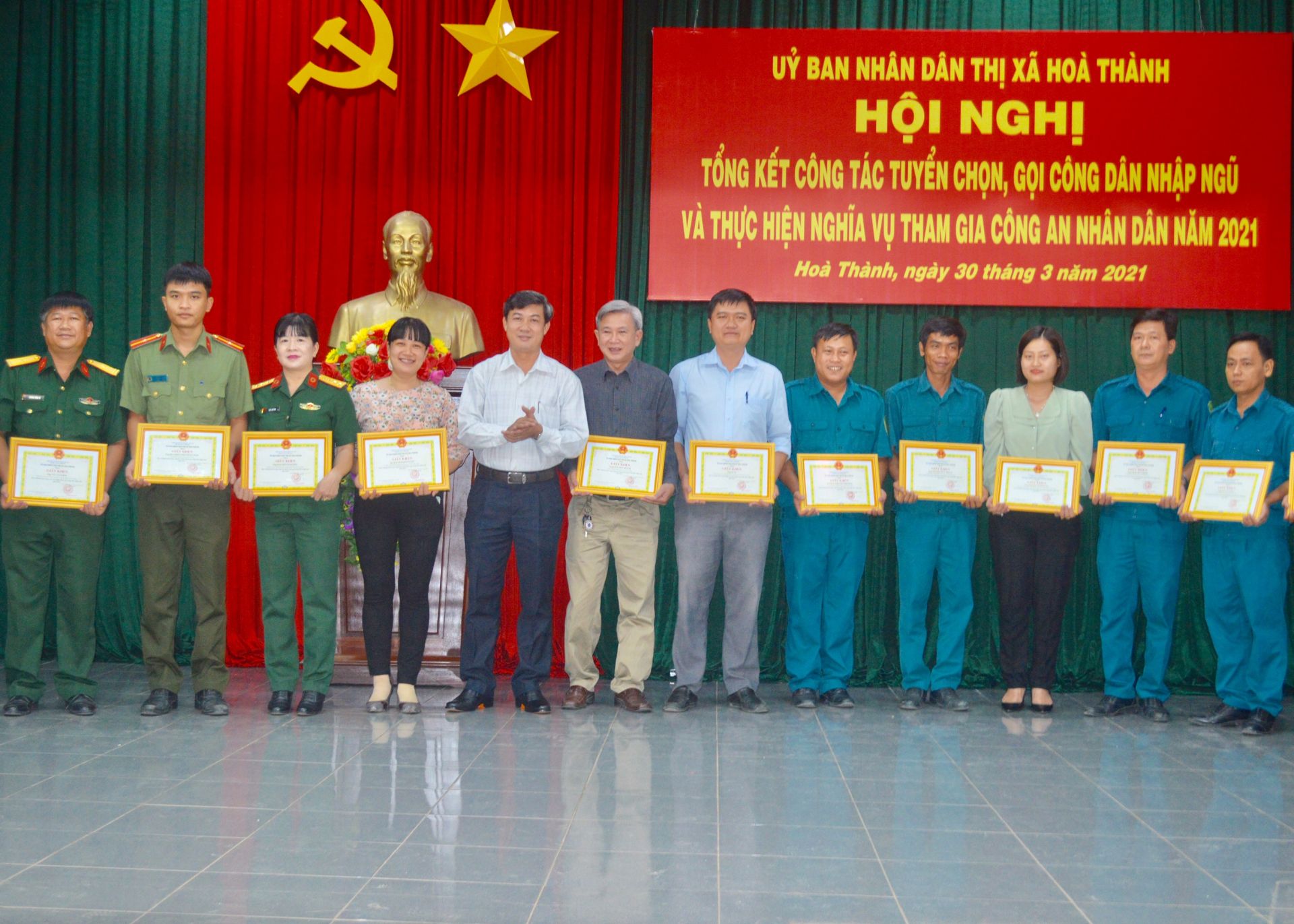 UBND thị xã Hòa Thành vừa tổng kết công tác tuyển chọn, gọi công dân nhập ngũ, tham gia thực hiện nghĩa vụ Công an Nhân dân năm 2021.