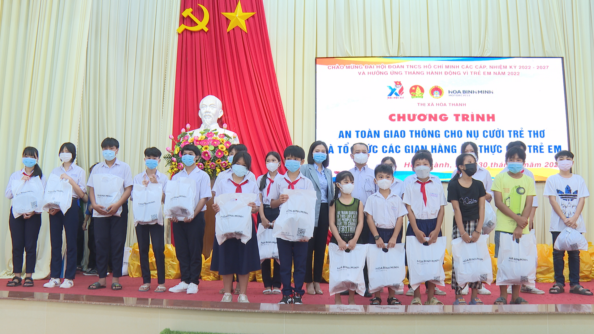 Dịp này, Thị đoàn Hoà Thành phối hợp với Head Honda Hoà Bình Minh tuyên truyền một số quy định về giao thông đường bộ cho các em; hướng dẫn các em đội nón bảo hiểm đúng cách và tặng 80 nón bảo hiểm cho các em.