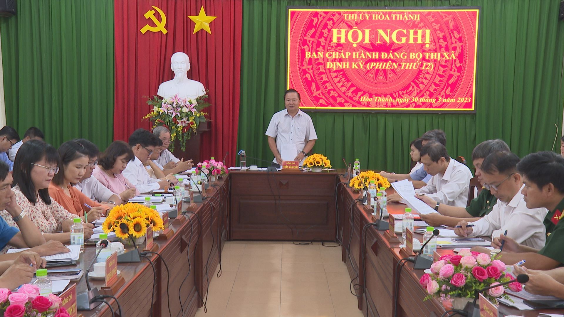 Chiều 30.3, Thị uỷ Hoà Thành tổ chức hội nghị đánh giá tình hình thực hiện Nghị quyết quý I và đề ra nhiệm vụ trọng tâm quý II.2023. Bí thư Thị uỷ Hoà Thành Trần Văn Khải chủ trì hội nghị.