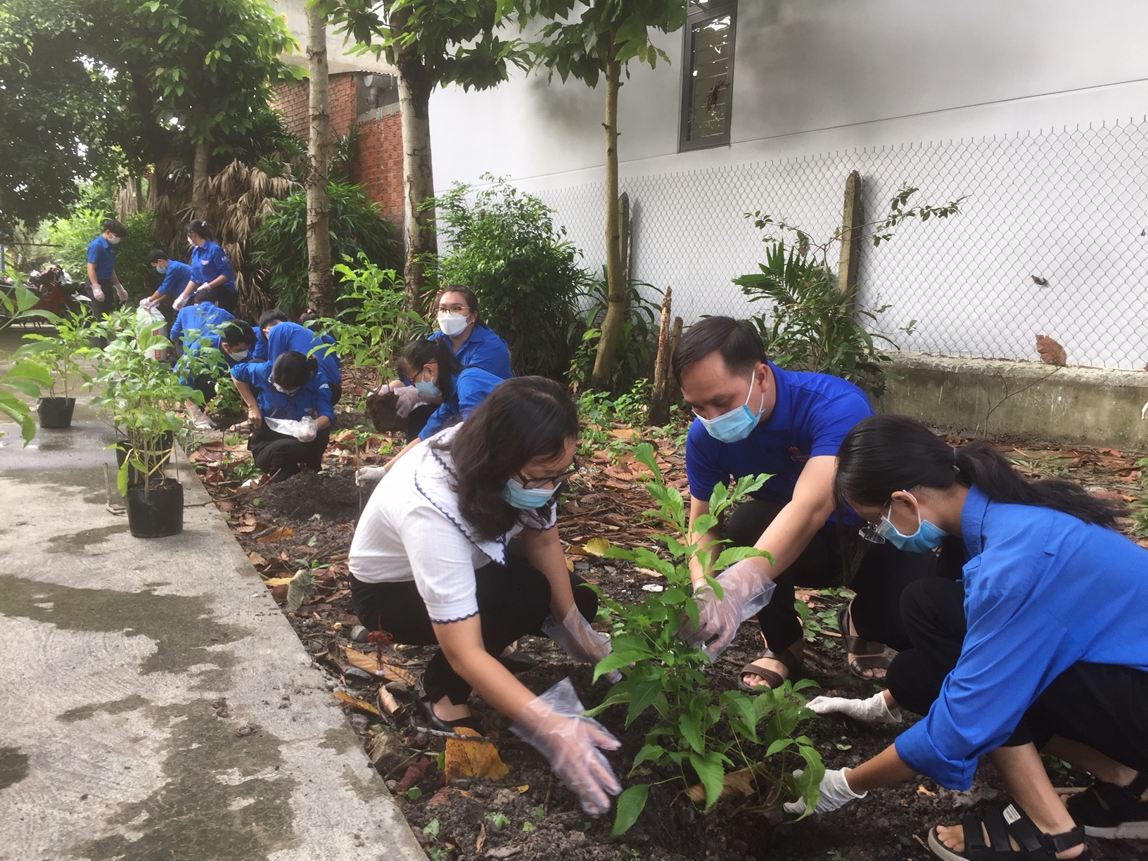 Lực lượng đoàn viên, thanh niên đã tham gia trồng cây hoàng yến trong khuôn viên Nhà văn hoá Dân tộc Khmer.