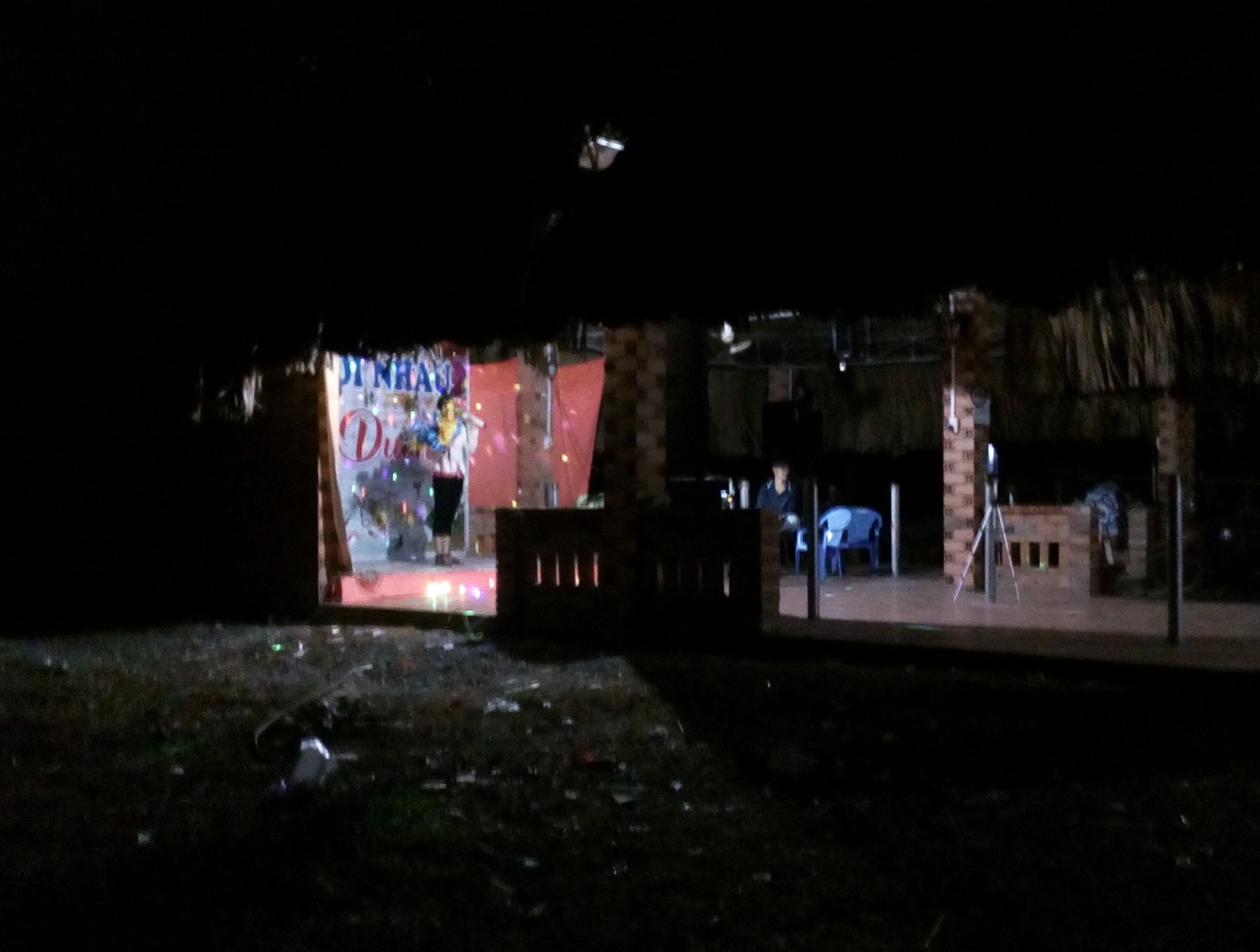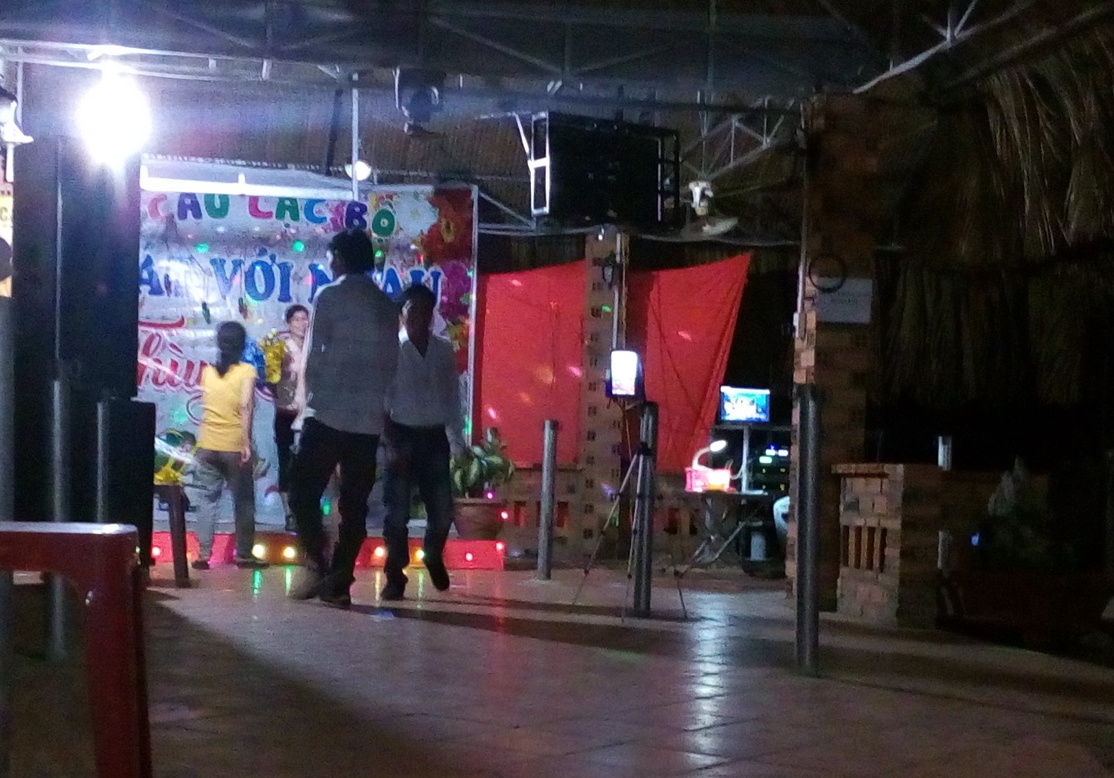Sân khấu của quán gần như trống hoác tứ bề nên tiếng ồn từ các thùng loa khếch đại âm thanh vang xa.