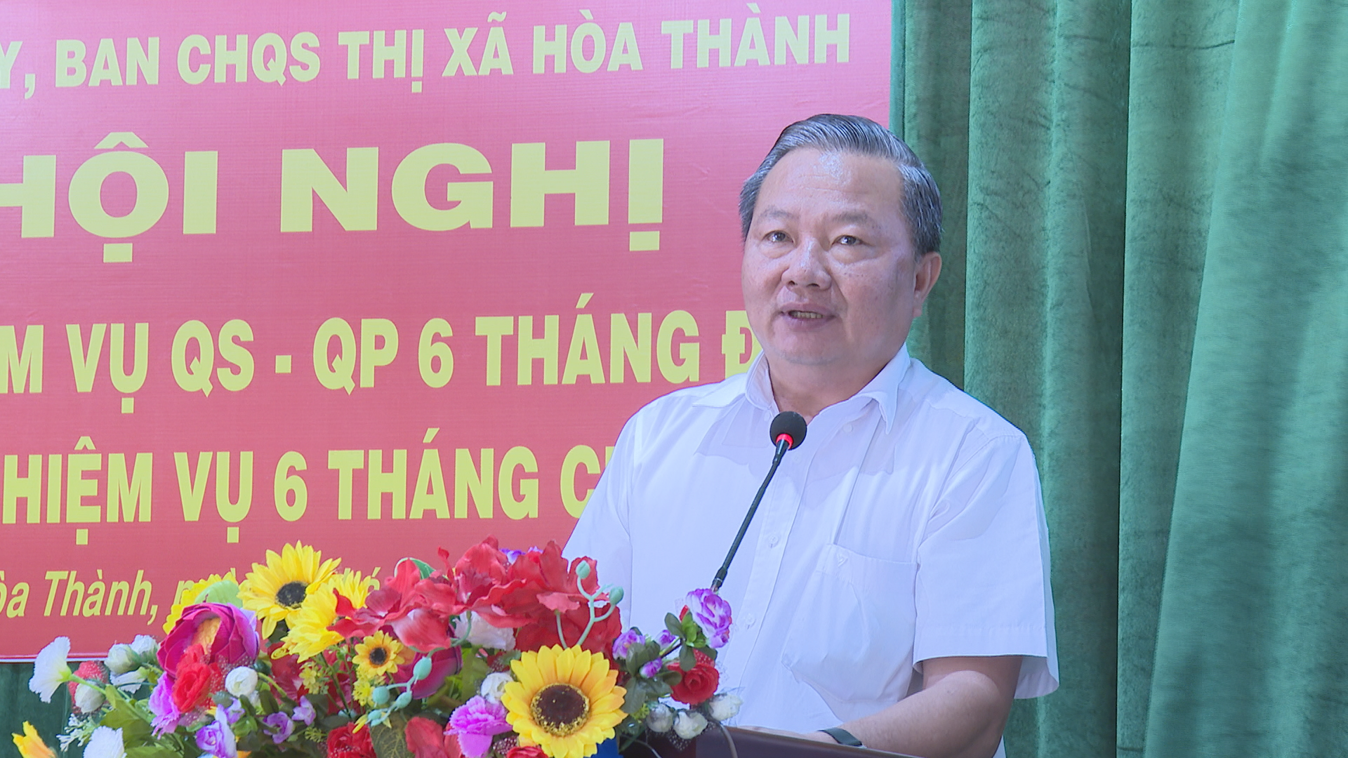 Chiều 27.6, Đảng ủy, Ban Chỉ huy quân sự thị xã Hòa Thành sơ kết nhiệm vụ quân sự, quốc phòng 6 tháng đầu năm 2022. Đến dự có ông Trần Văn Khải- Bí thư Thị ủy, ông Trương Văn Hoàn- Chủ tịch UBND thị xã.