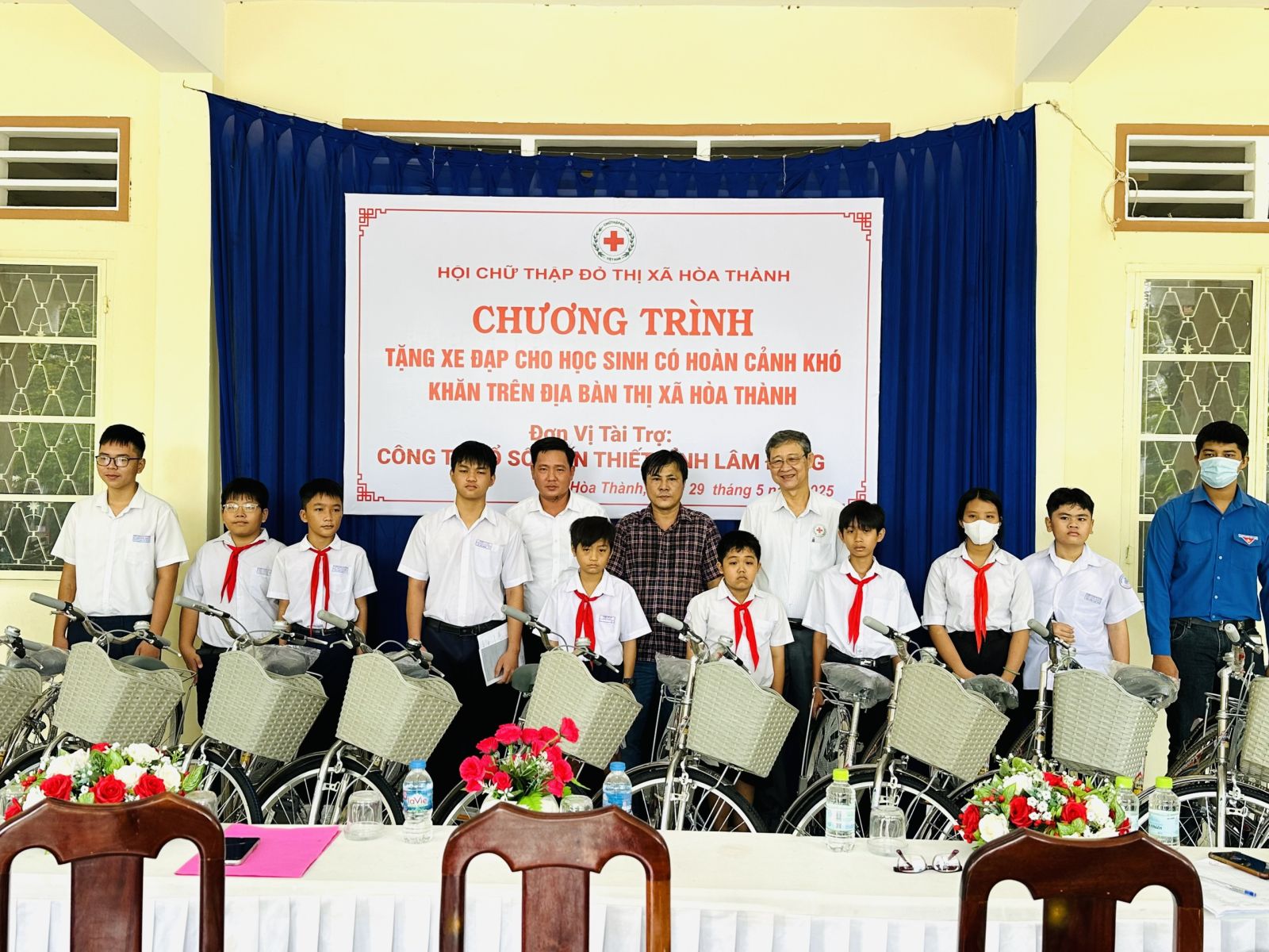 Sáng 29.5, Hội Chữ thập đỏ thị xã Hoà Thành tổ chức lễ trao tặng xe đạp cho các em học sinh giỏi, có hoàn cảnh đặc biệt khó khăn trên địa bàn. Đến dự có ông Lê Quang Trung- Chủ tịch Hội Chữ thập đỏ tỉnh.