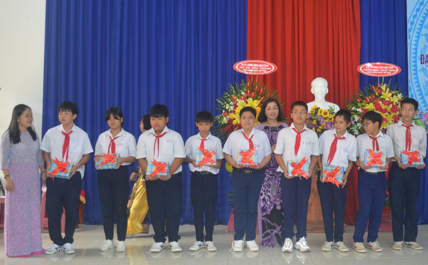 Tặng quà cho các em học sinh có hoàn cảnh khó khăn trên địa bàn.