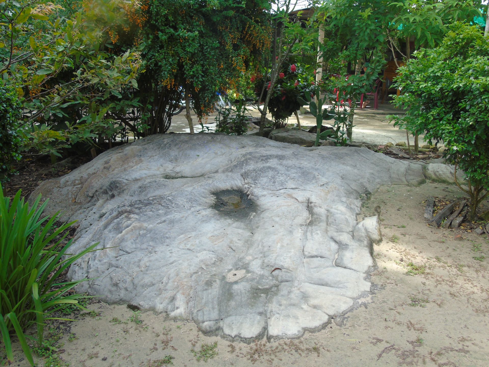 Trong khu vườn mãng cầu liền với sân, cũng còn một khối đá có đặc điểm riêng rõ nét. Loại đá này giống với loại mang tên cổ thạch có bán ở cửa hàng đá non bộ cầu Thái Hoà (TP. Tây Ninh). Đây là khối đá kết lại từ nhiều lớp, với các đường vân như sóng lượn.
