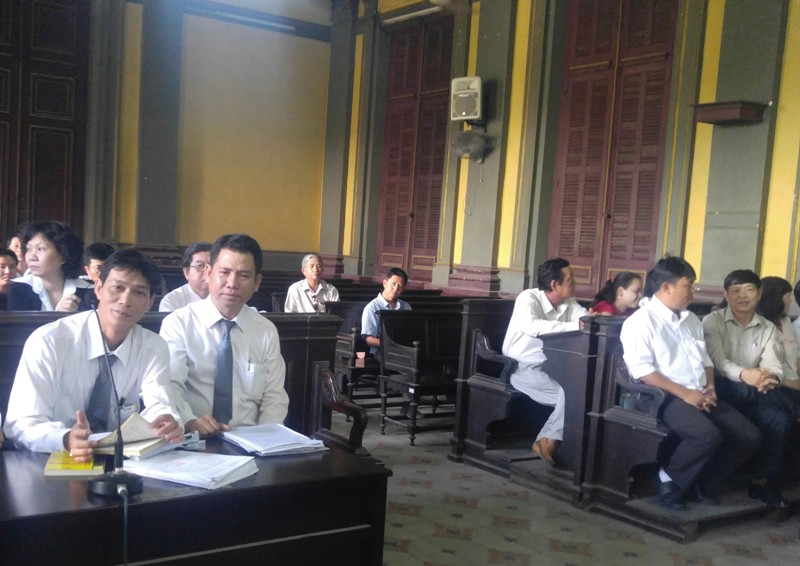 Luật sư và người có quyền lợi, nghĩa vụ liên quan tham dự phiên toà.