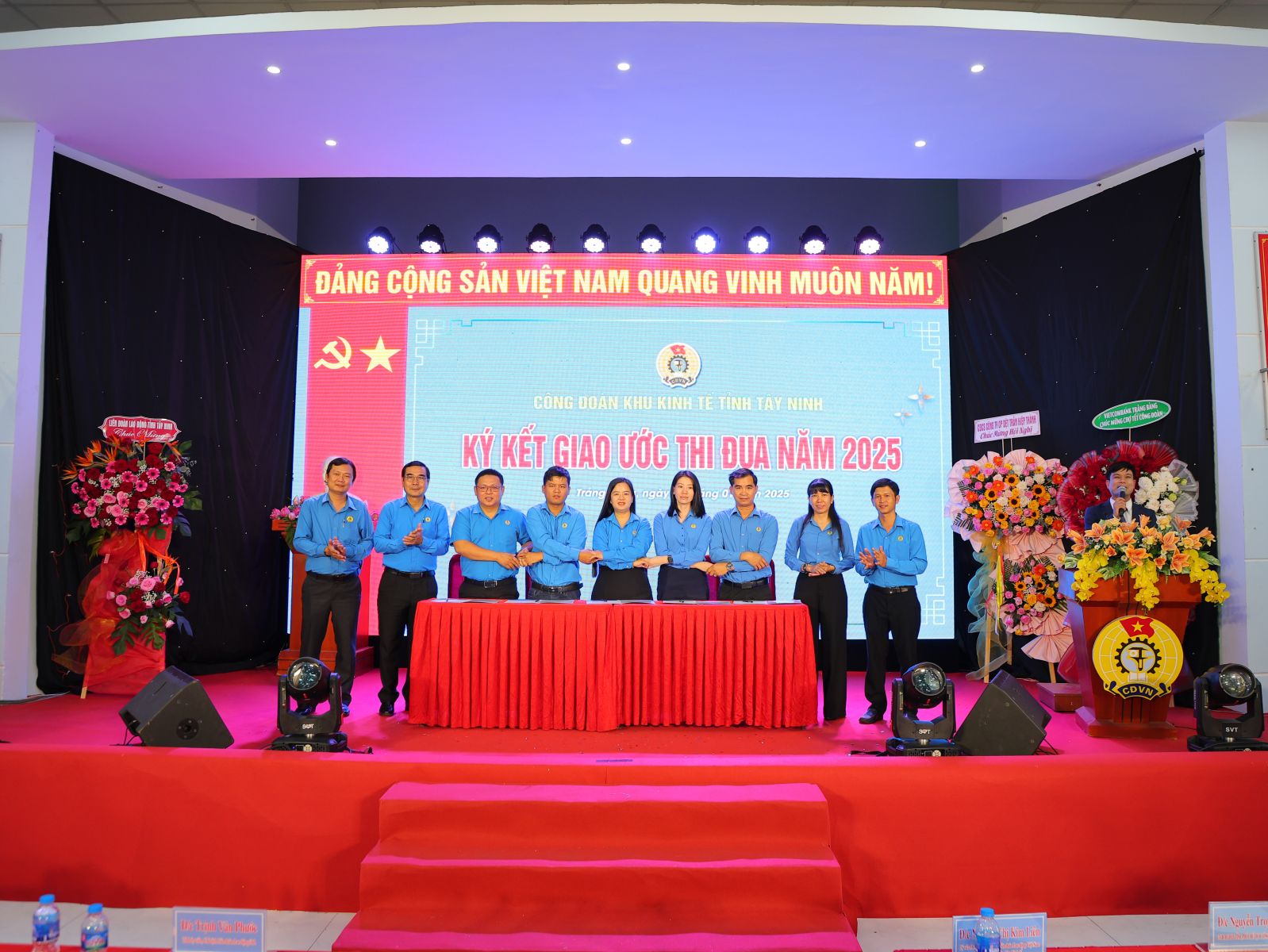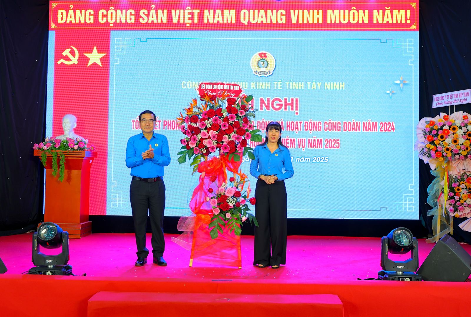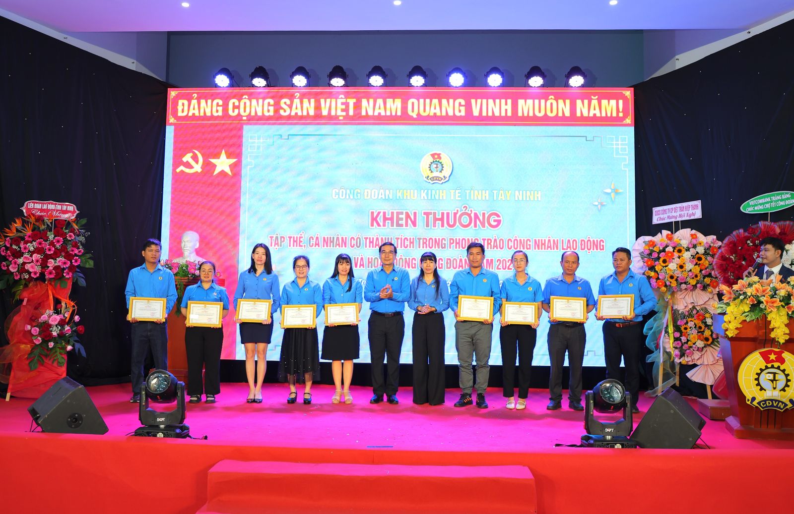 Liên đoàn Lao động tỉnh tặng bằng khen cho 8 tập thể và 8 cá nhân; bằng khen chuyên đề về “Xanh - Sạch - Đẹp, bảo đảm an toàn vệ sinh lao động”, “Văn hoá, thể thao”, “Giỏi việc nước, đảm việc nhà” cho 5 tập thể và 8 cá nhân. Đồng thời tổ chức ký kết giao ước thi đua năm 2025 đối với CĐCS 5 khu chế xuất, khu công nghiệp: Linh Trung, Trảng Bàng, Thành Thành Công, Phước Đông và Chà Là.