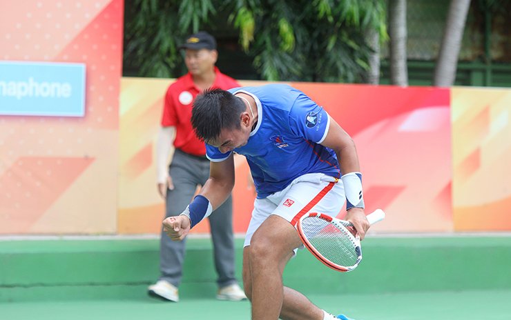 Lý Hoàng Nam ăn mừng chiến thắng khi tham gia giải đấu được tổ chức trên sân nhà (CLB quần vợt Hải Đăng Tây Ninh).