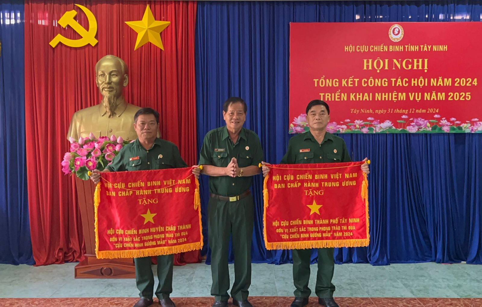 Dịp này, Ban Chấp hành Trung ương Hội CCB Việt Nam tặng Cờ đơn vị xuất sắc trong phong trào thi đua CCB gương mẫu năm 2024 cho Hội CCB thành phố Tây Ninh và huyện Châu Thành; tặng bằng khen cho 2 tập thể và 3 cá nhân. Ngoài ra, Hội CCB tỉnh cũng tặng bằng khen cho các cá nhân và tập thể có thành tích xuất sắc, tiêu biểu trong phong trào thi đua CCB gương mẫu năm 2024.