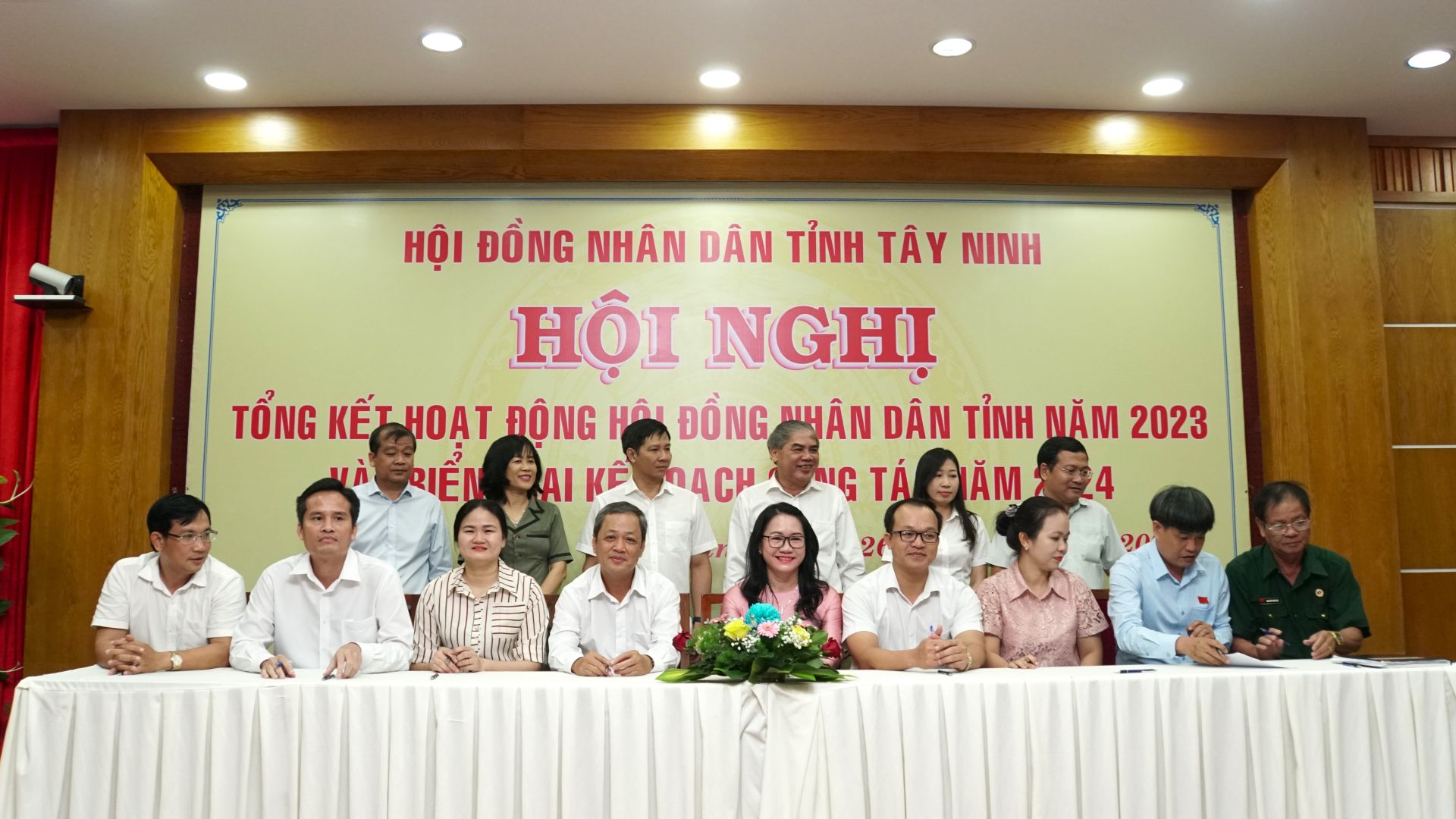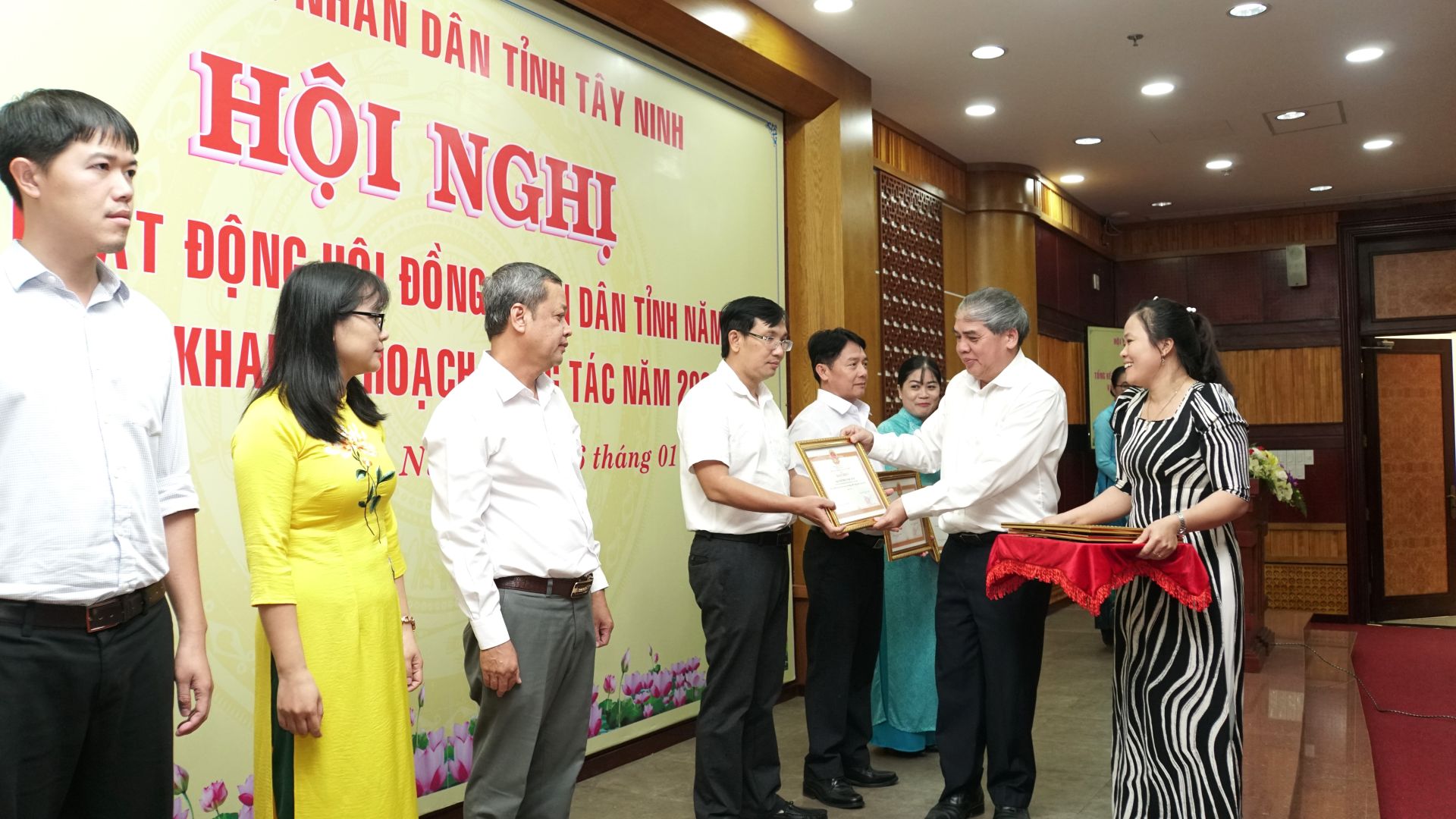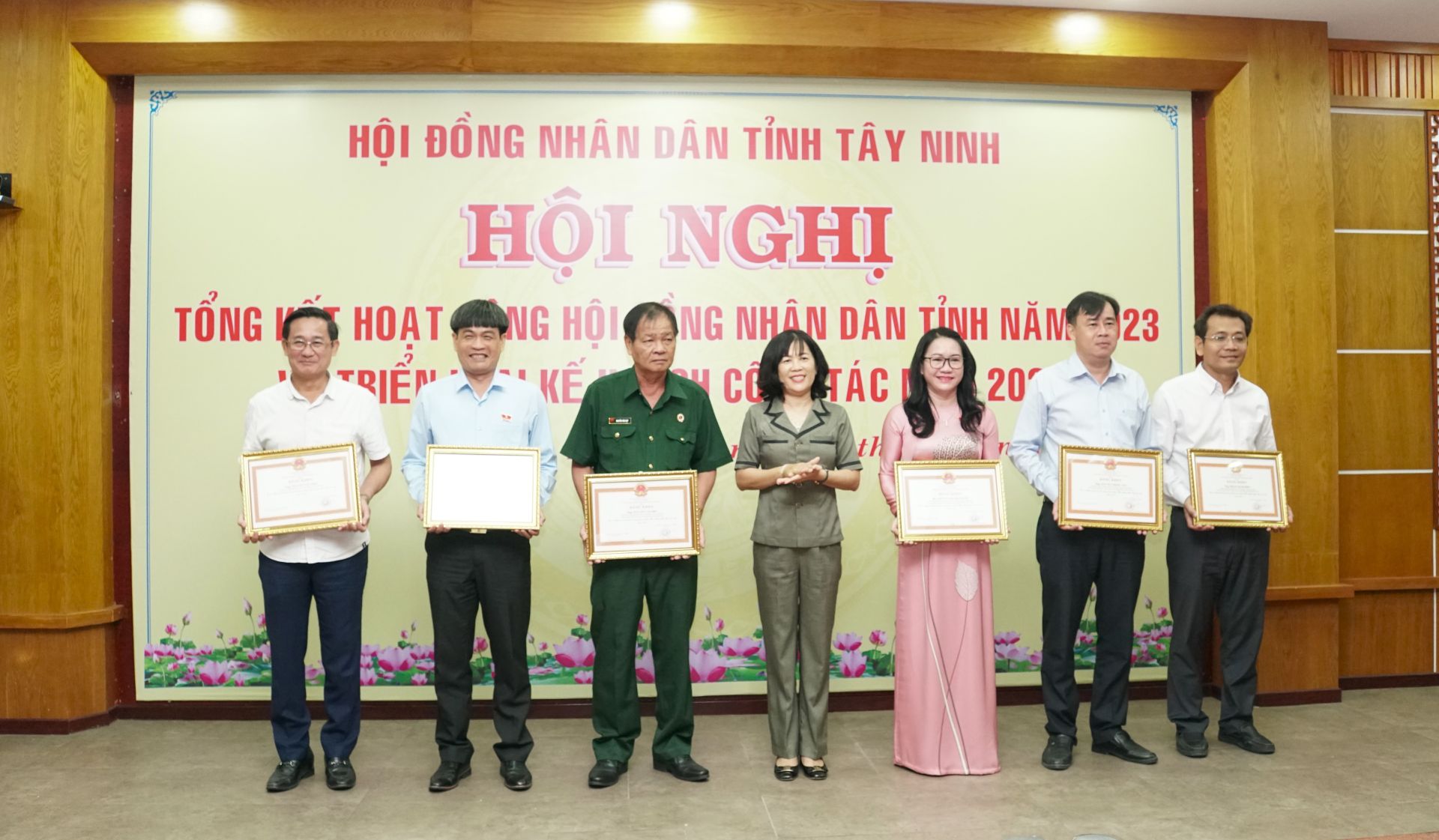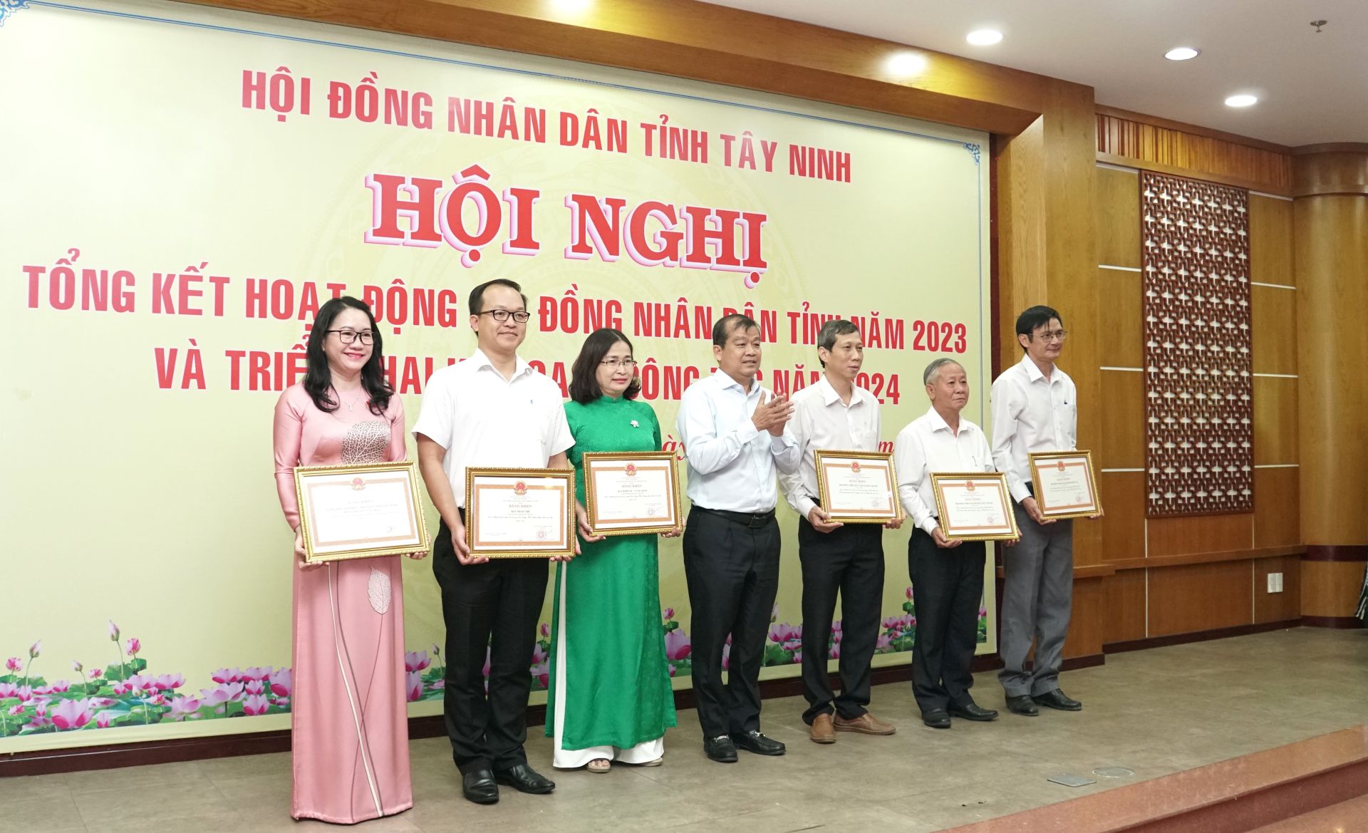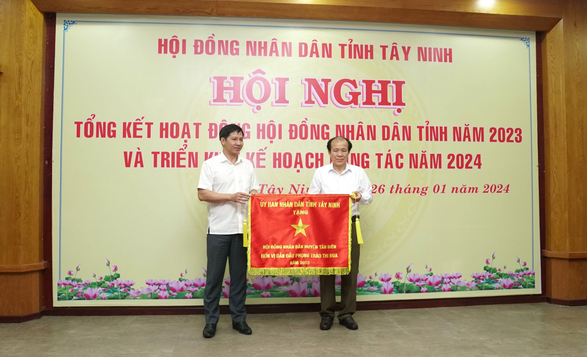 Dịp này, UBND tỉnh tặng Cờ “Đơn vị dẫn đầu phong trào thi đua” năm 2023 cho HĐND huyện Tân Biên; tặng Bằng khen cho 3 tập thể có thành tích xuất sắc trong hoạt động Khối thi đua HĐND các huyện, thị xã, thành phố năm 2023 và 4 tập thể, 14 cá nhân có thành tích xuất sắc trong hoạt động HĐND các cấp.