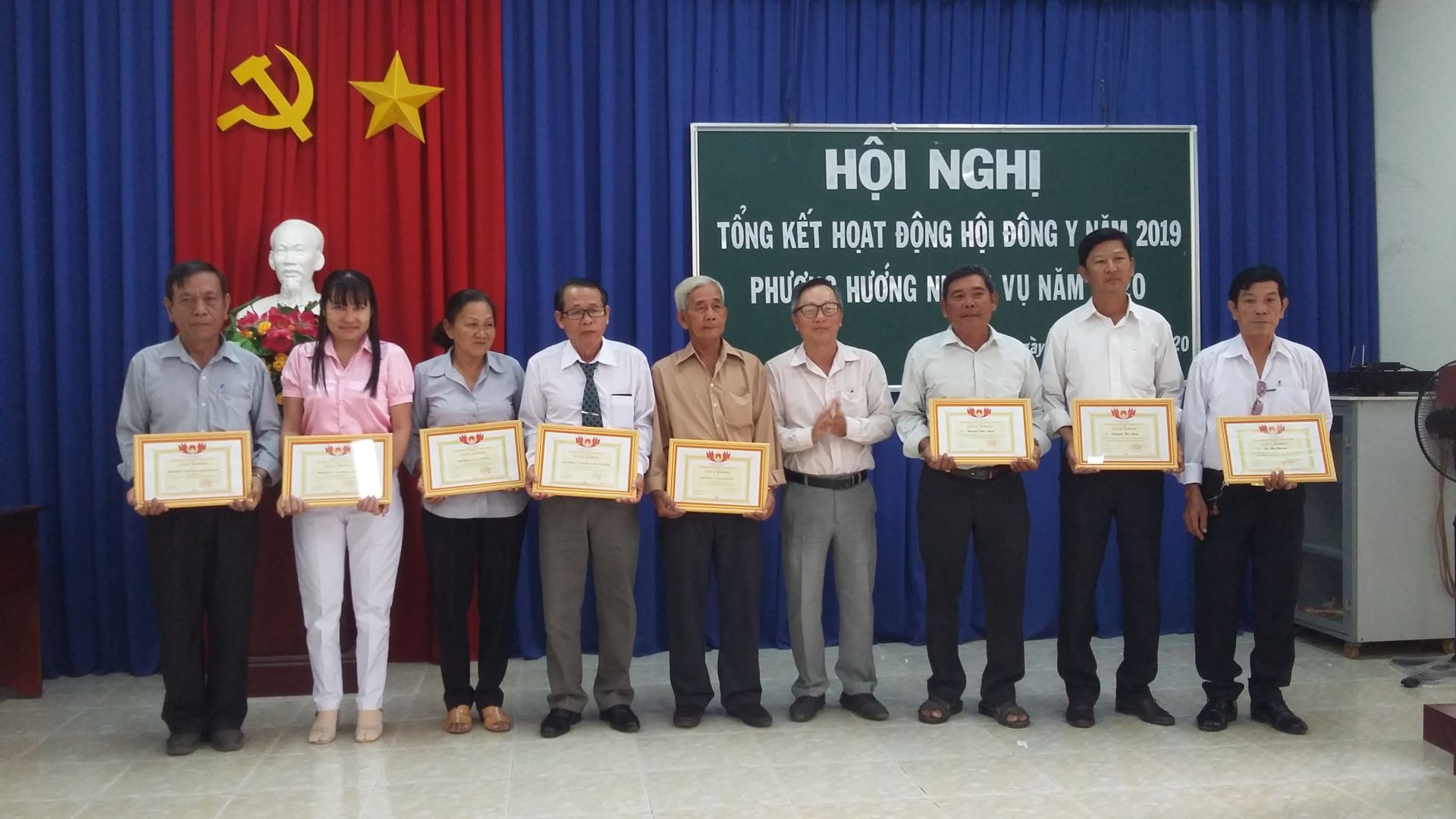 Đại diện Hội Đông y tỉnh Tây Ninh trao tặng giấy khen của UBND huyện cho tập, thể cá nhân có thành tích công tác Đông y năm 2019