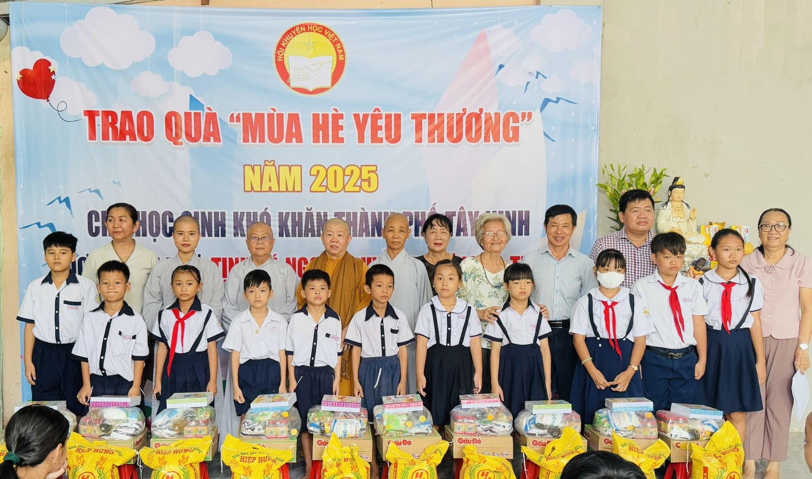 Sáng 17.6, tại tịnh xá Ngọc Truyền (phường 1, TP. Tây Ninh) Hội Khuyến học thành phố Tây Ninh tổ chức chương trình trao quà “Mùa hè yêu thương” năm 2025 cho các em học sinh có hoàn cảnh khó khăn trên địa bàn phường 1.