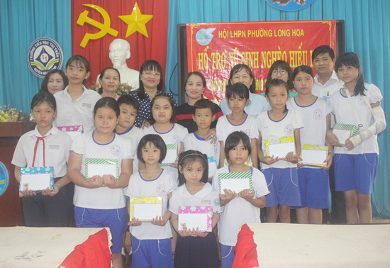 Dịp này, Hội LHPN phường Long Hoa đã trao tặng 25 suất học bổng cho các học sinh nghèo, khó khăn ở trường, mỗi suất trị giá 400.000 đồng, do Hội vận động mạnh thường quân tài trợ.