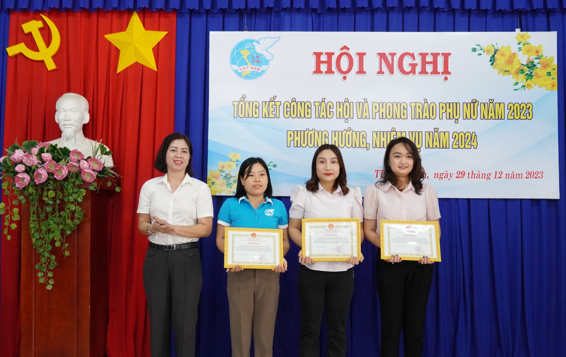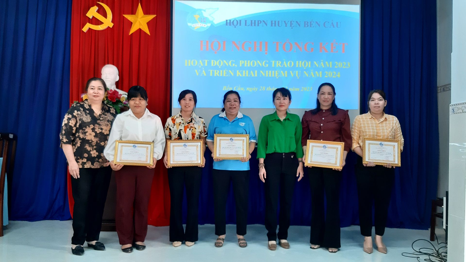 UBND tỉnh, Hội LHPN tỉnh Tây Ninh, UBND huyện và Hội LHPN huyện Bến Cầu trao giấy khen cho các tập thể, cá nhân có thành tích xuất sắc, tiêu biểu trong công tác và hoạt động, phong trào thi đua cấp Hội năm 2023.