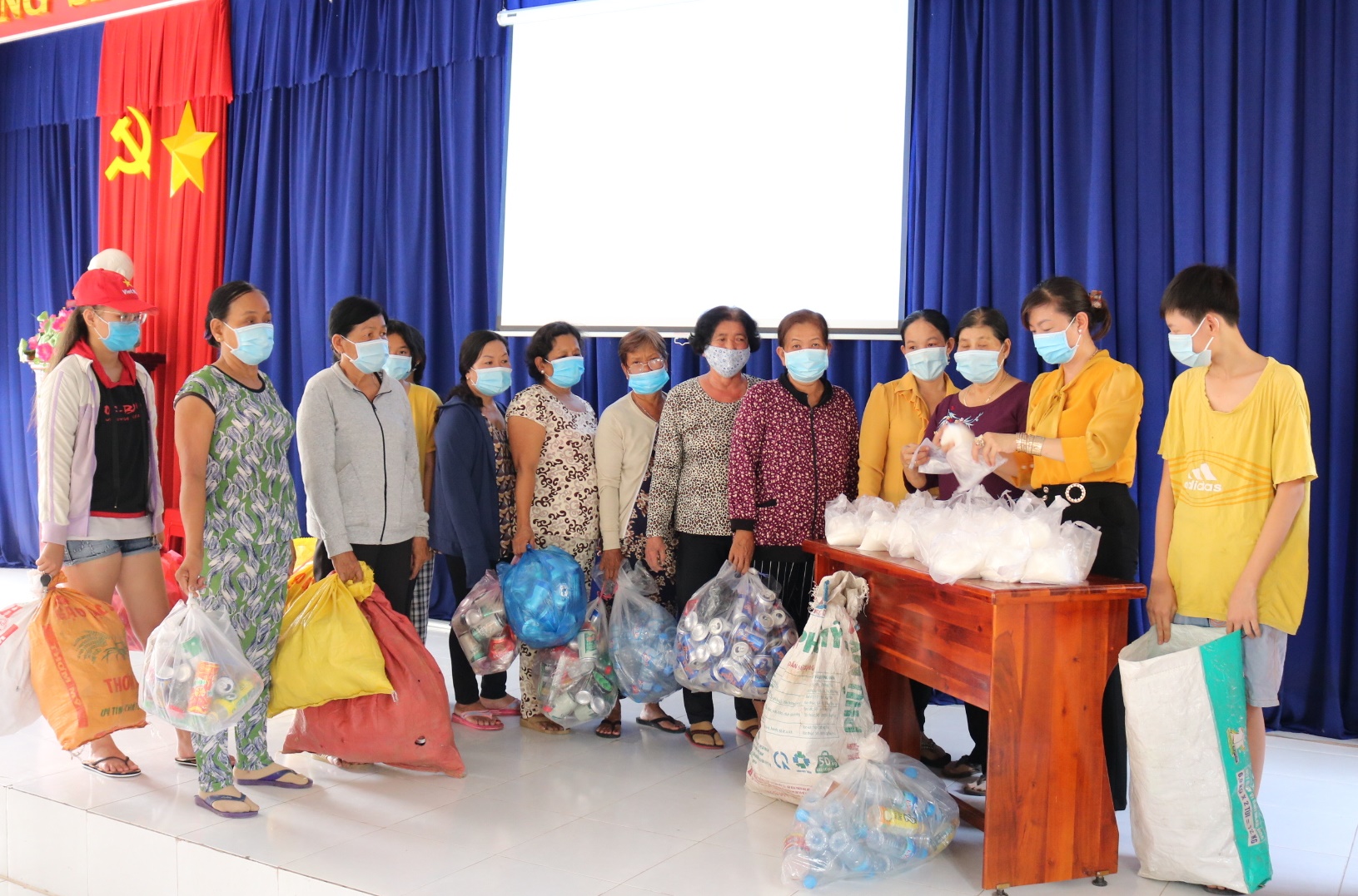 Hội viên phụ nữ mang rác thải nhựa đổi lấy nhu yếu phẩm.