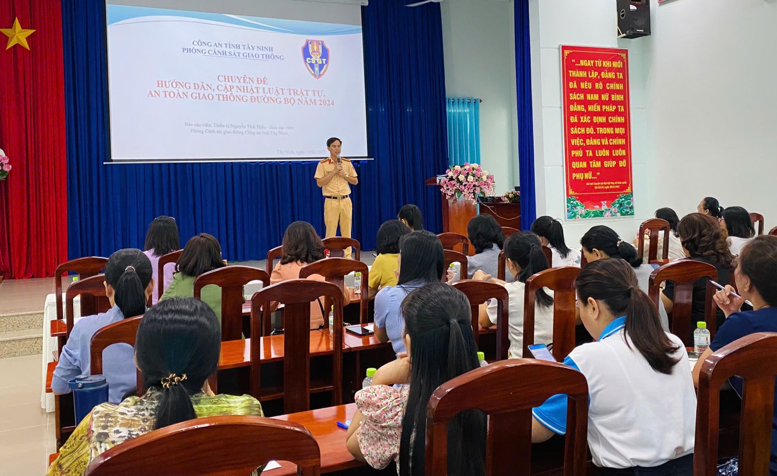 Cùng ngày, Hội LHPN tỉnh phối hợp Ban An toàn giao thông tỉnh tổ chức triển khai Luật Trật tự an toàn giao thông, Luật Đường bộ và các văn bản có liên quan cho 40 cán bộ, công chức, người lao động trong cơ quan Hội LHPN tỉnh và các huyện, thị xã, thành phố.