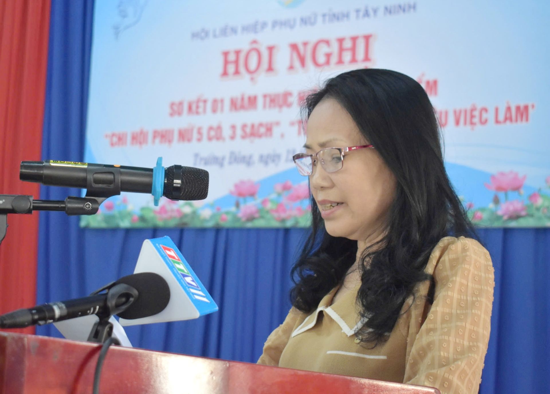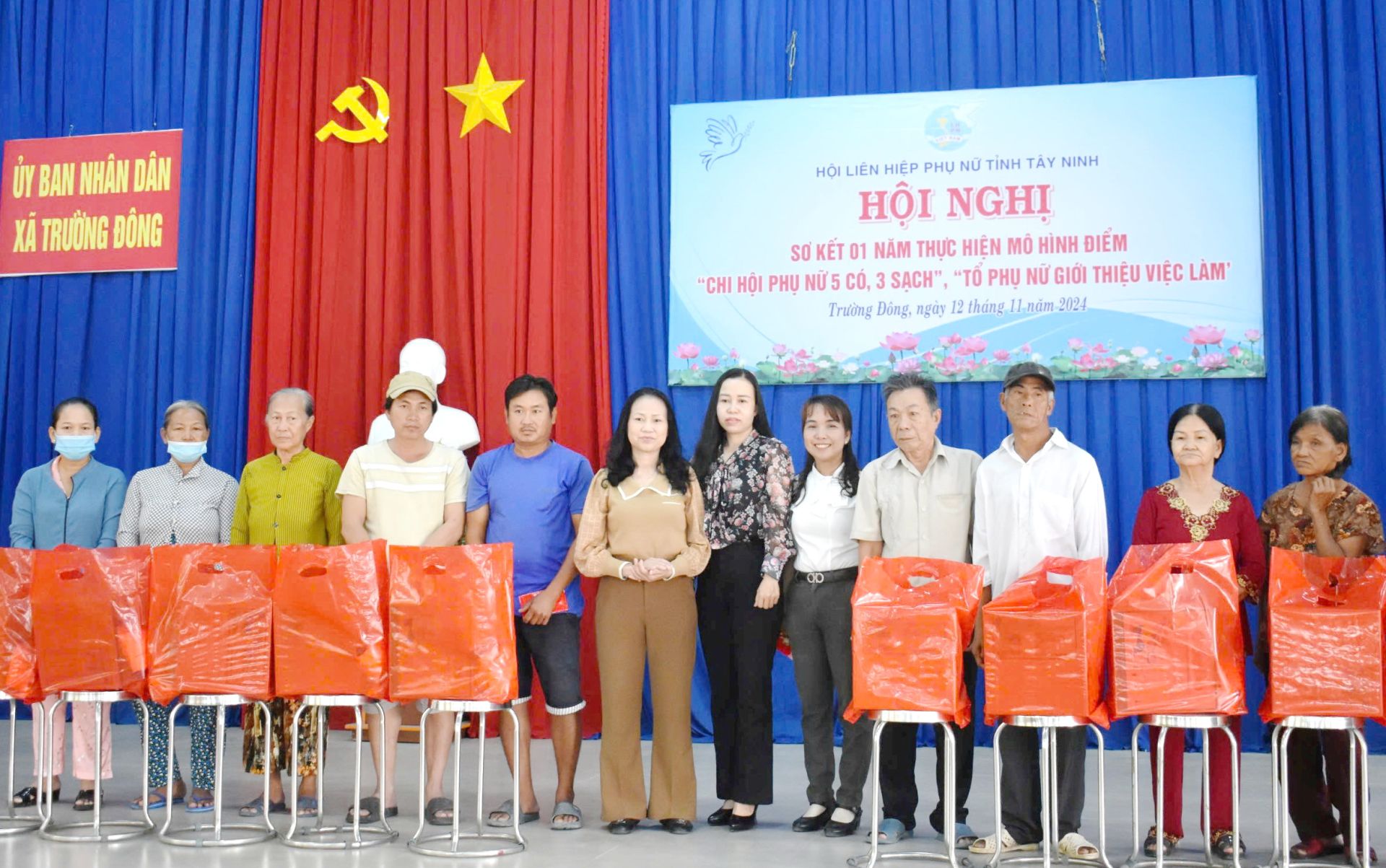 Ngày 12.11, tại xã Trường Đông, thị xã Hoà Thành, Hội Liên hiệp Phụ nữ (LHPN) tỉnh tổ chức sơ kết 1 năm thực hiện mô hình điểm Chi hội Phụ nữ 5 có, 3 sạch, Tổ phụ nữ giới thiệu việc làm.