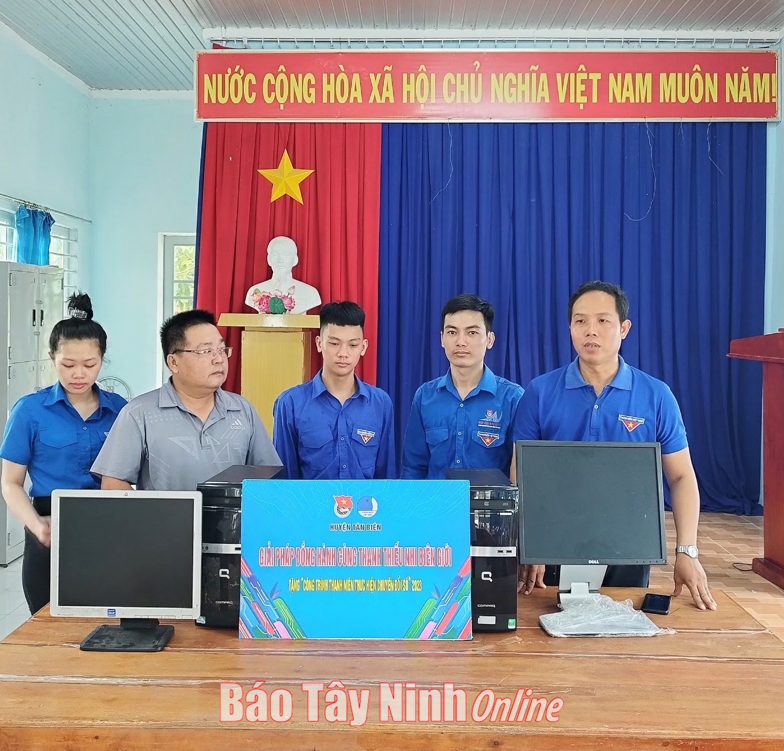 Trong năm 2023, Hội LHTN huyện đã vận động nguồn lực thực hiện công trình thanh niên chuyển đổi số trao tặng 14 hệ thống máy vi tính có kết nối internet miễn phí tại 14 nhà văn hoá ấp trên địa bàn xã biên giới, xã nông thôn mới trị giá hơn 80 triệu đồng