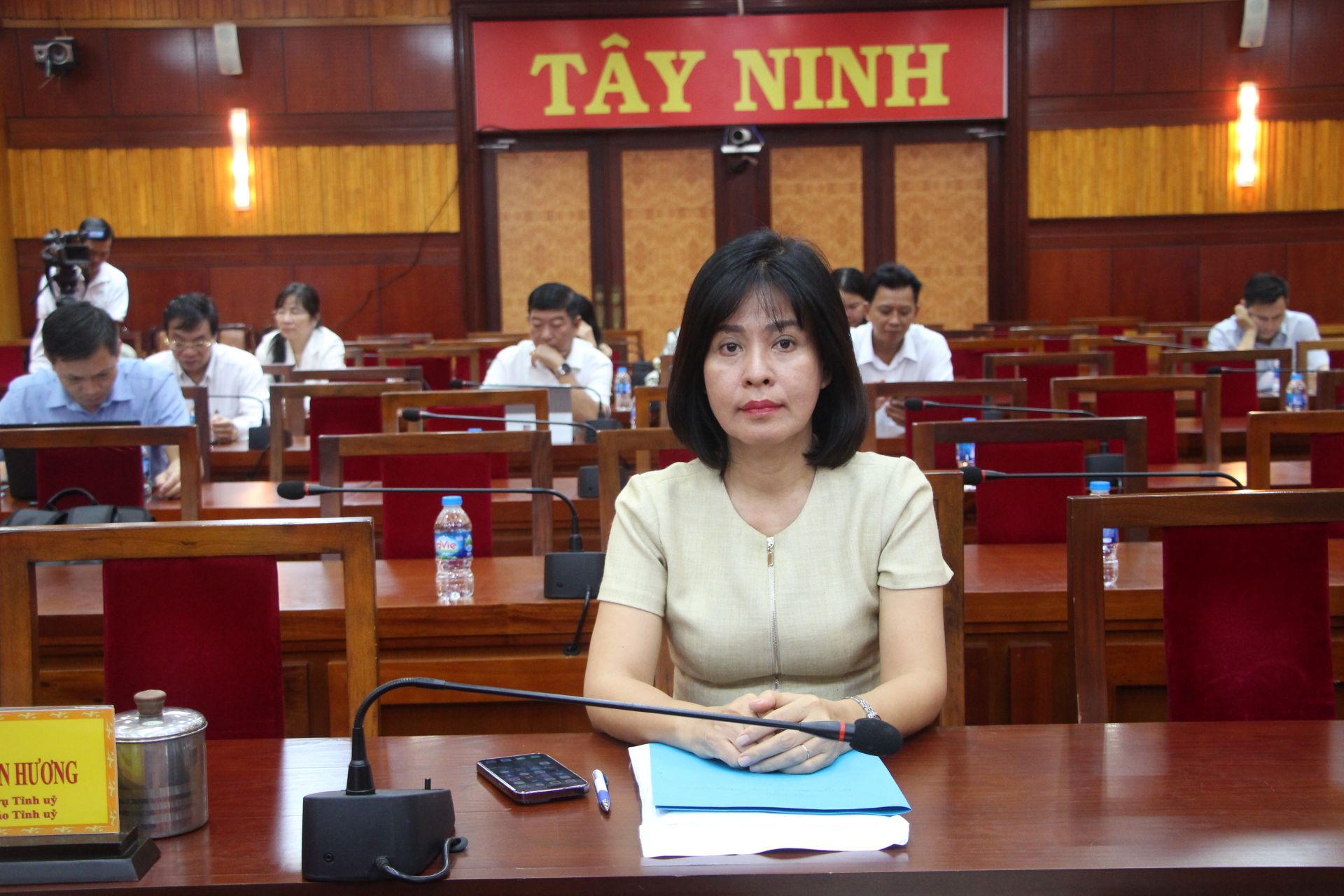 Bà Nguyễn Thị Xuân Hương - Trưởng Ban Tuyên giáo Tỉnh uỷ dự hội nghị tại điểm cầu Tây Ninh.