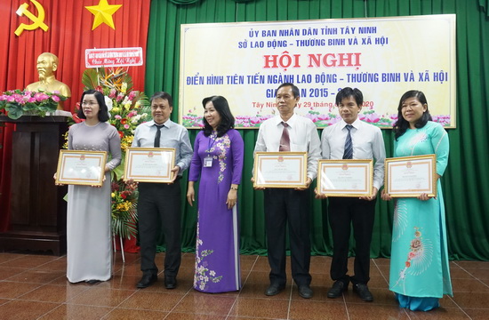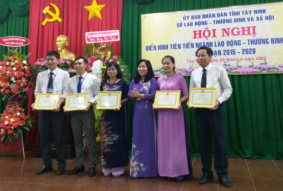 Dịp này, Sở LĐTB&XH đã trao bằng khen của UBND tỉnh cho 6 cá nhân có thành tích xuất sắc, là điển hình tiên tiến trong công tác đào tạo nguồn nhân lực cho tỉnh Tây Ninh, giai đoạn 2015-2020; tặng giấy khen cho 2 tập thể và 5 cá nhân đã tích cực tham gia các phong trào thi đua trong công tác lao động- người có công và xã hội, giai đoạn 2015-2020.