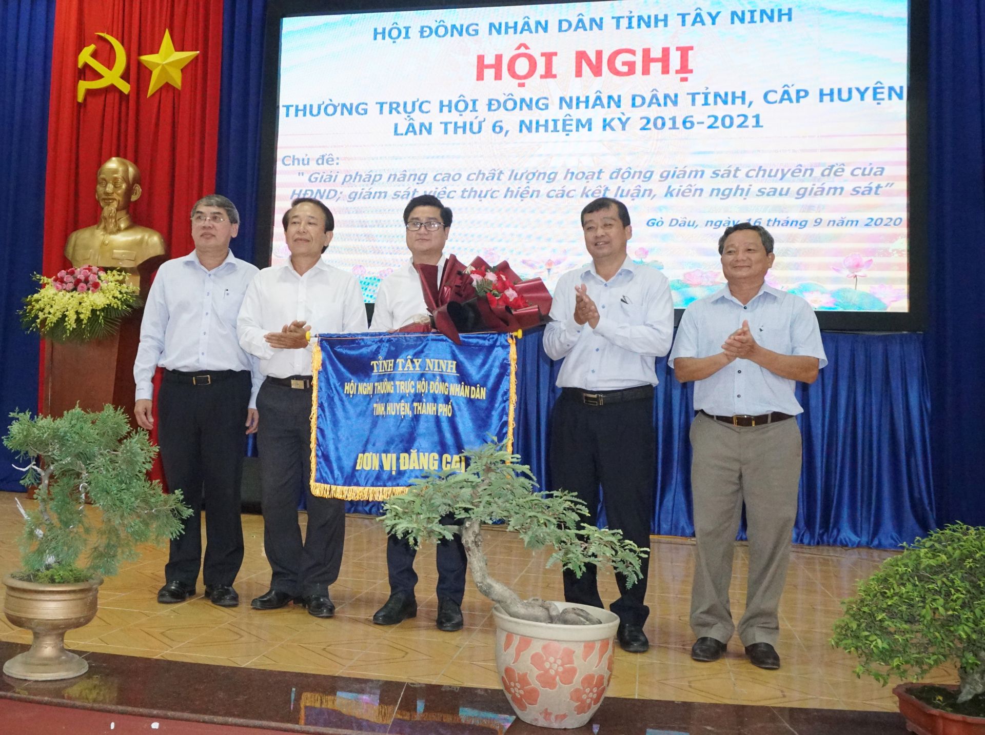 Hội nghị trao cờ đăng cai Hội nghị lần thứ 7 cho Thường trực HĐND huyện Dương Minh Châu.