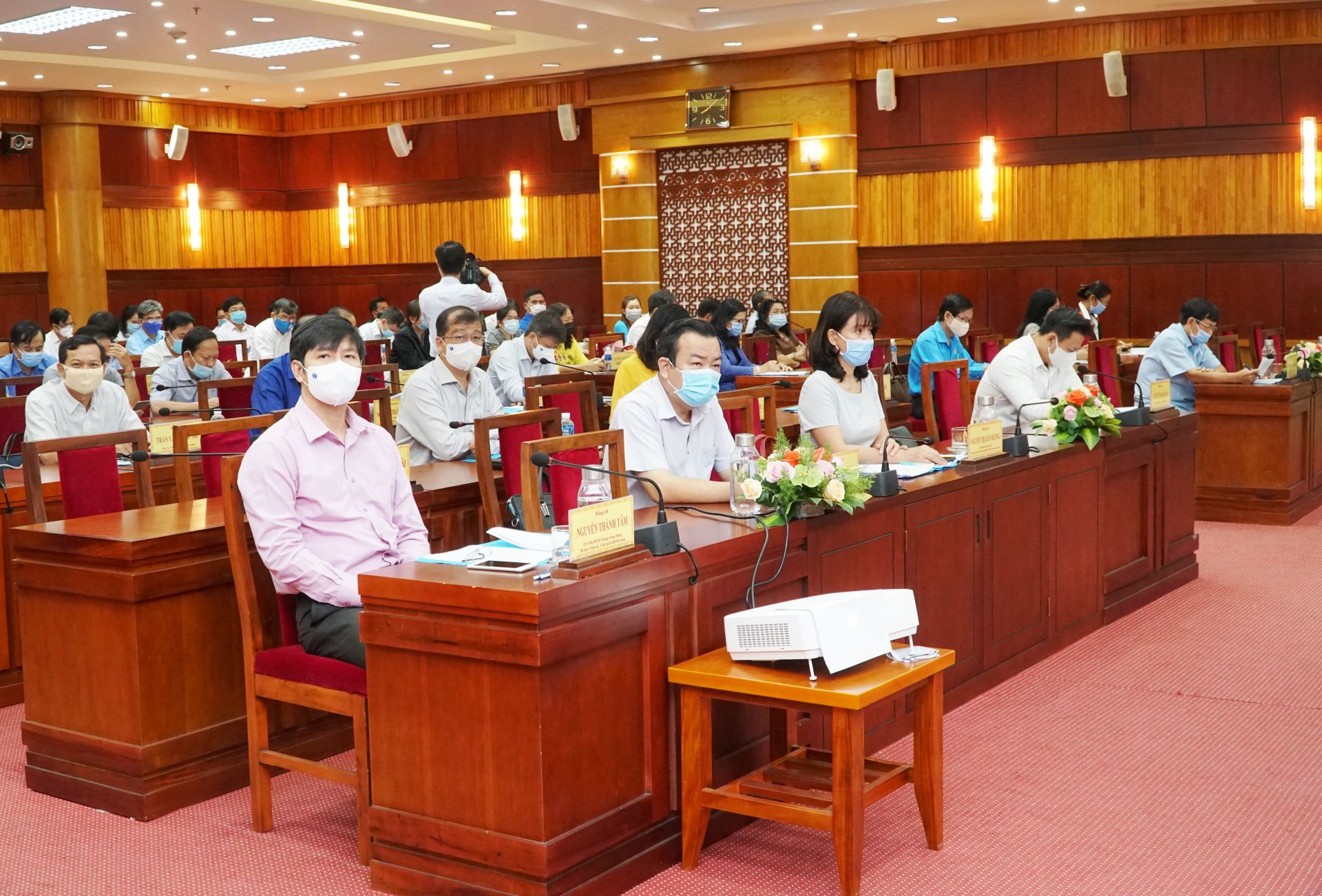 Lãnh đạo tỉnh dự Hội nghị tại điểm cầu truyền hình Hội trường Tỉnh ủy.