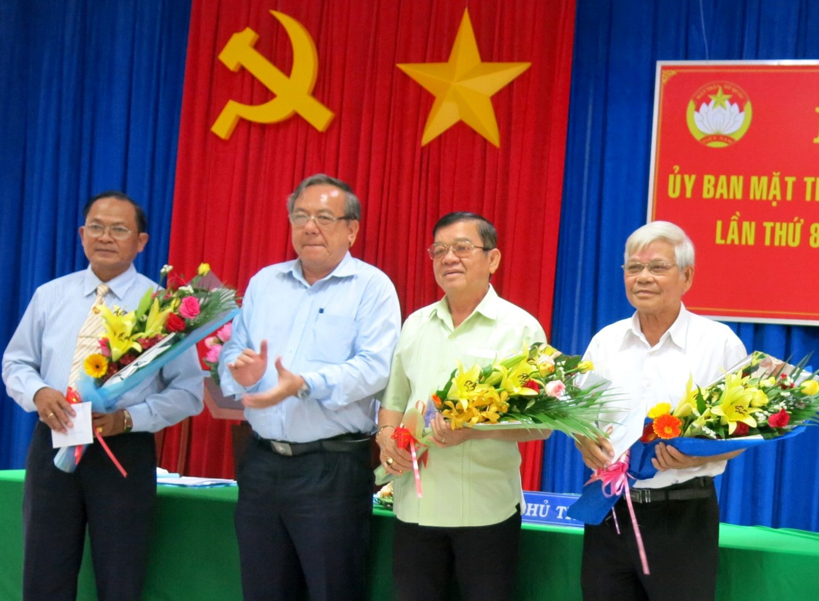 | Tặng hoa cho các đại biểu nguyên uỷ viên UB.MTTQVN tỉnh. |