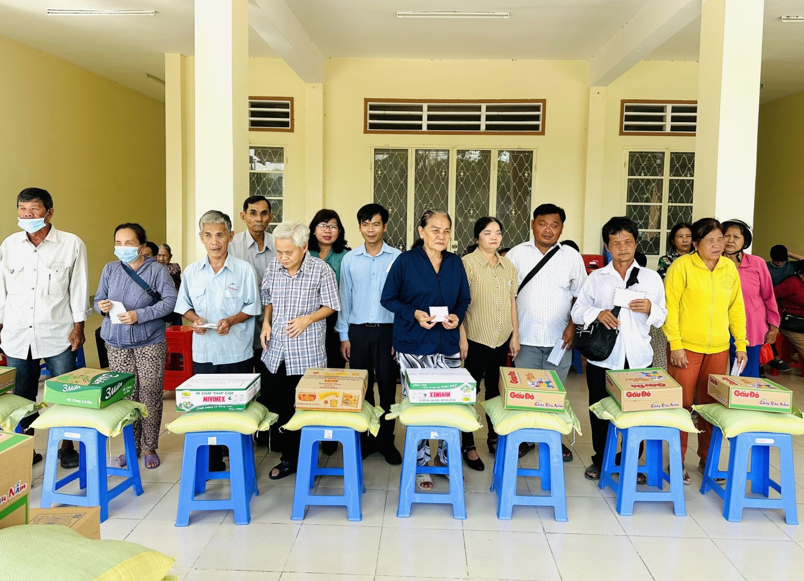 Mỗi phần quà trị giá gần 400 ngàn đồng, gồm 100 ngàn đồng tiền mặt, cùng các nhu yếu phẩm; tổng trị giá quà tặng 20 triệu đồng.