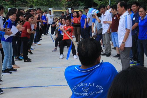 Tham gia hội thao có trên 100 vận động viên là cán bộ, công chức, người lao động đến từ Bảo hiểm xã hội Tây Ninh và Bảo hiểm xã hội các huyện, thành phố, cùng tranh tài ở các nội dung kéo co, nhảy bao bố và kẹp bong bóng.