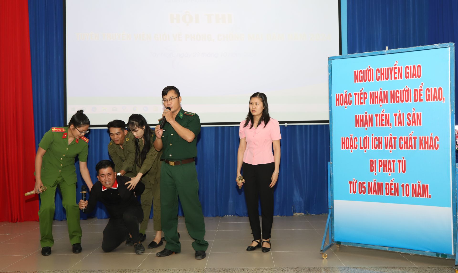 Tham gia hội thi có 9 đội đến từ Hội LHPN các huyện, thị xã, thành phố của tỉnh. Các nội dung thi liên quan đến chính sách, pháp luật về phòng, chống mại dâm, mua bán người.
