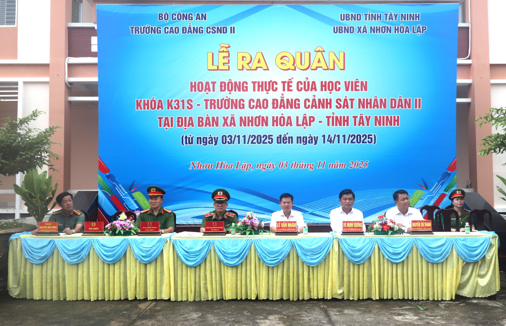 Sáng 03/11, Trường Cao đẳng Cảnh sát Nhân dân (CSND) II phối hợp chính quyền, công an địa phương tổ chức Lễ ra quân hoạt động thực tế cho 1.021 học viên, khóa K31S tại xã Nhơn Hòa Lập, tỉnh Tây Ninh.
