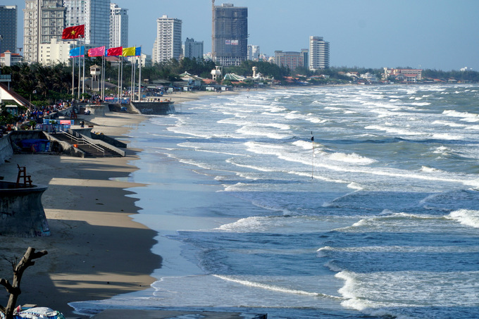 Đứng trên bờ biển hơn 20 phút, vợ chồng anh Long tranh thủ chụp vài kiểu ảnh. Họ rời đi và dự tính đến một vài địa điểm ở Bãi Trước ngắm hoàng hôn, ăn bánh khọt - đặc sản của thành phố biển.