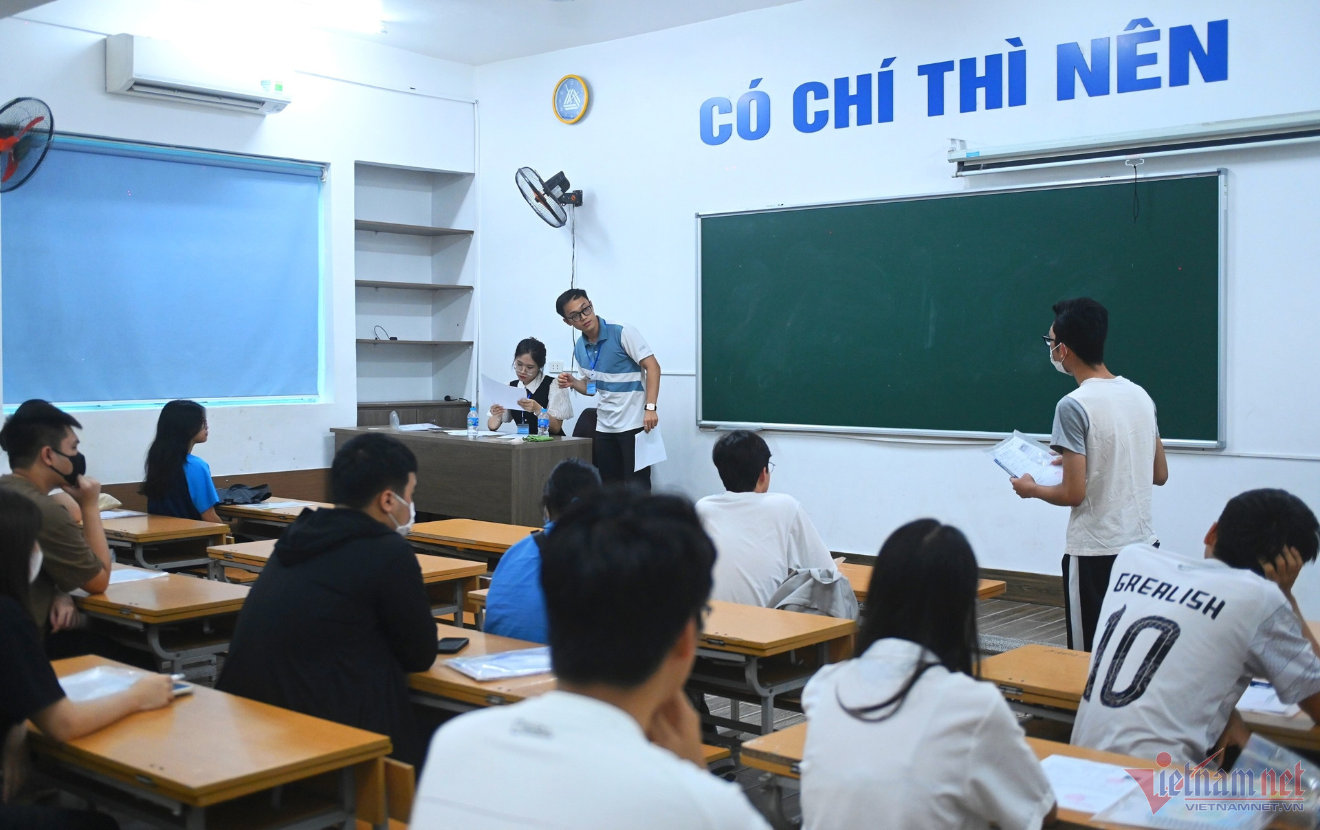 Sau 14h, các thí sinh được gọi vào phòng, ổn định chỗ ngồi và lắng nghe quy chế. Ảnh: Thạch Thảo