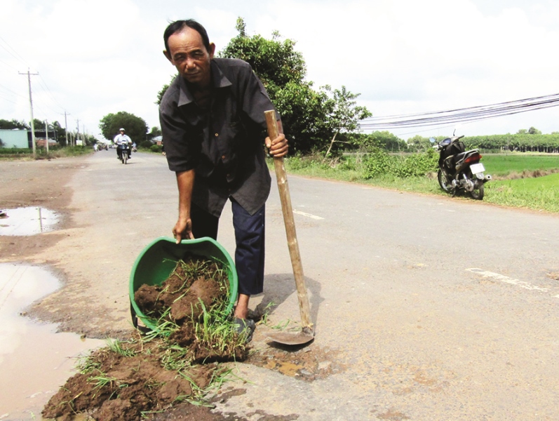 Những ai thường tham gia giao thông trên đường 781 đoạn từ cầu Bến Sỏi, ấp Bắc Bến Sỏi đến ngã ba chợ Hoà Bình thuộc ấp Thành Bắc, xã Thành Long, huyện Châu Thành dài gần 4km hẳn đều thường xuyên chứng kiến người đàn ông tay cầm cuốc ban lấp các ổ gà trên đường. Đó chính là anh Huỳnh Văn Mức, sinh năm 1962, ngụ ấp Bắc Bến Sỏi.