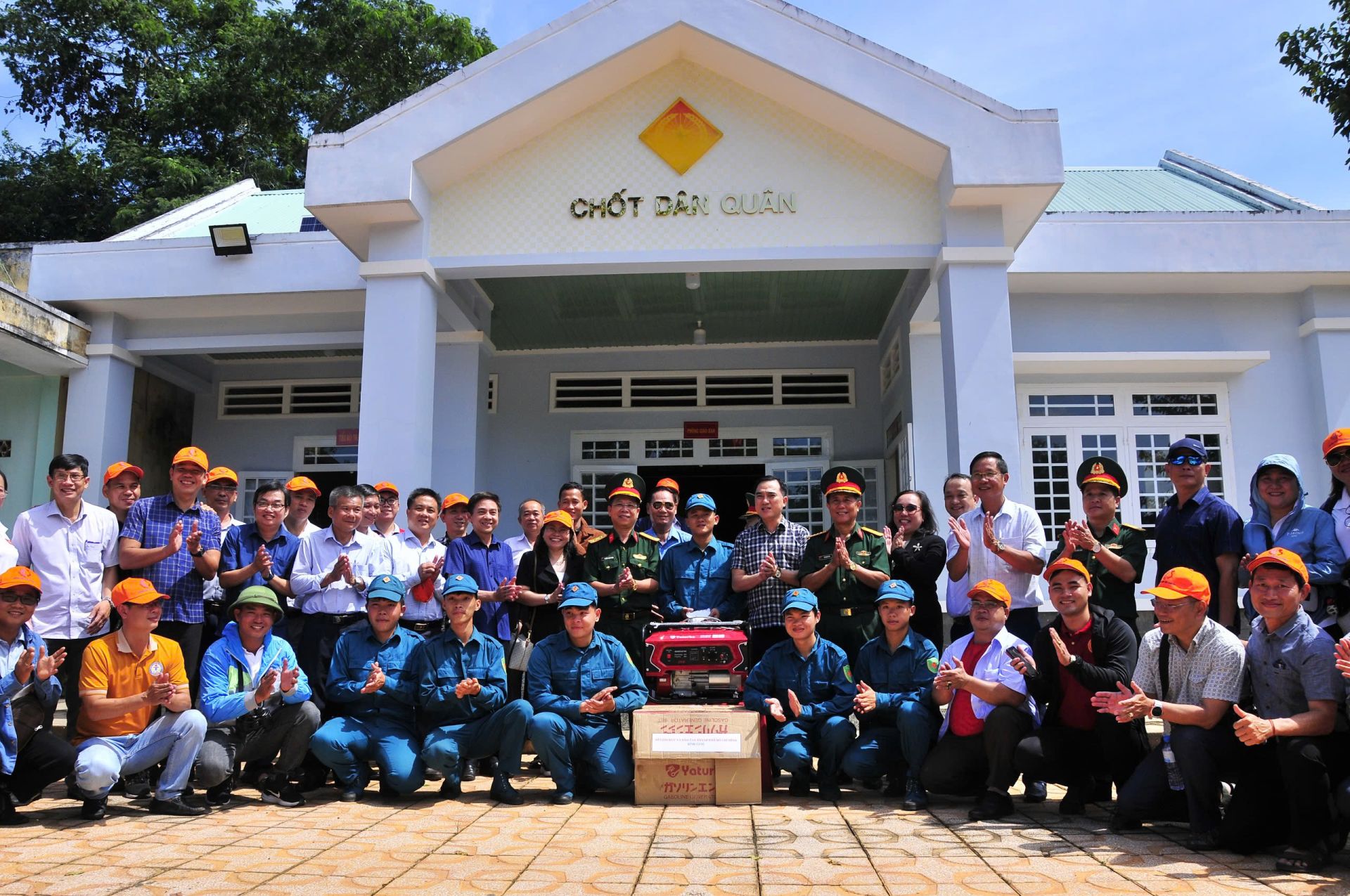 Đại diện Sở Giáo dục và Đào tạo TP. Hồ Chí Minh tặng máy phát điện cho chốt chiến đấu dân quân thường trực Cây Me, xã Hoà Hiệp, huyện Tân Biên.