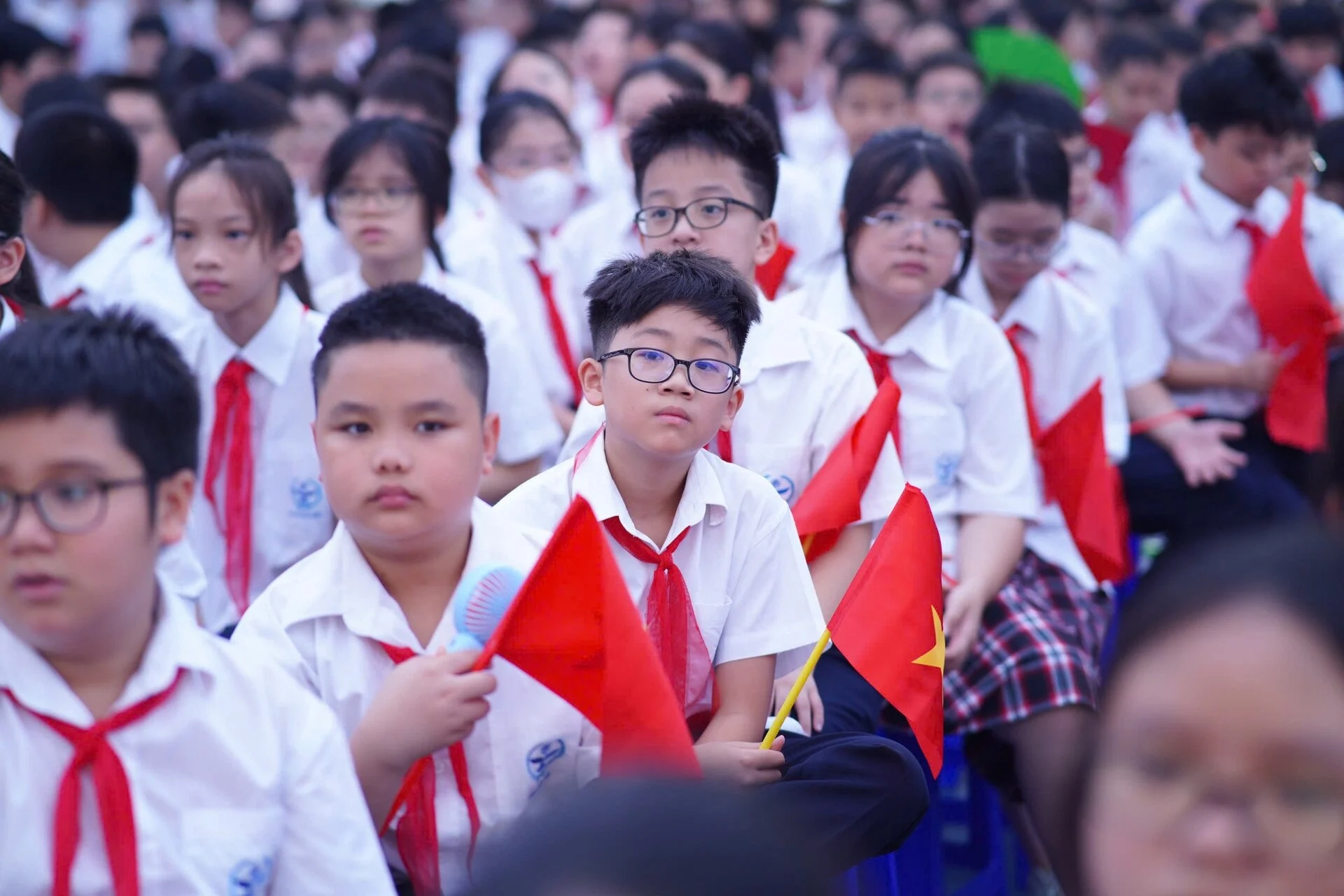 Cũng có những bạn nhỏ cực kỳ nhiệt huyết, vui tươi trong lễ khai giảng.
