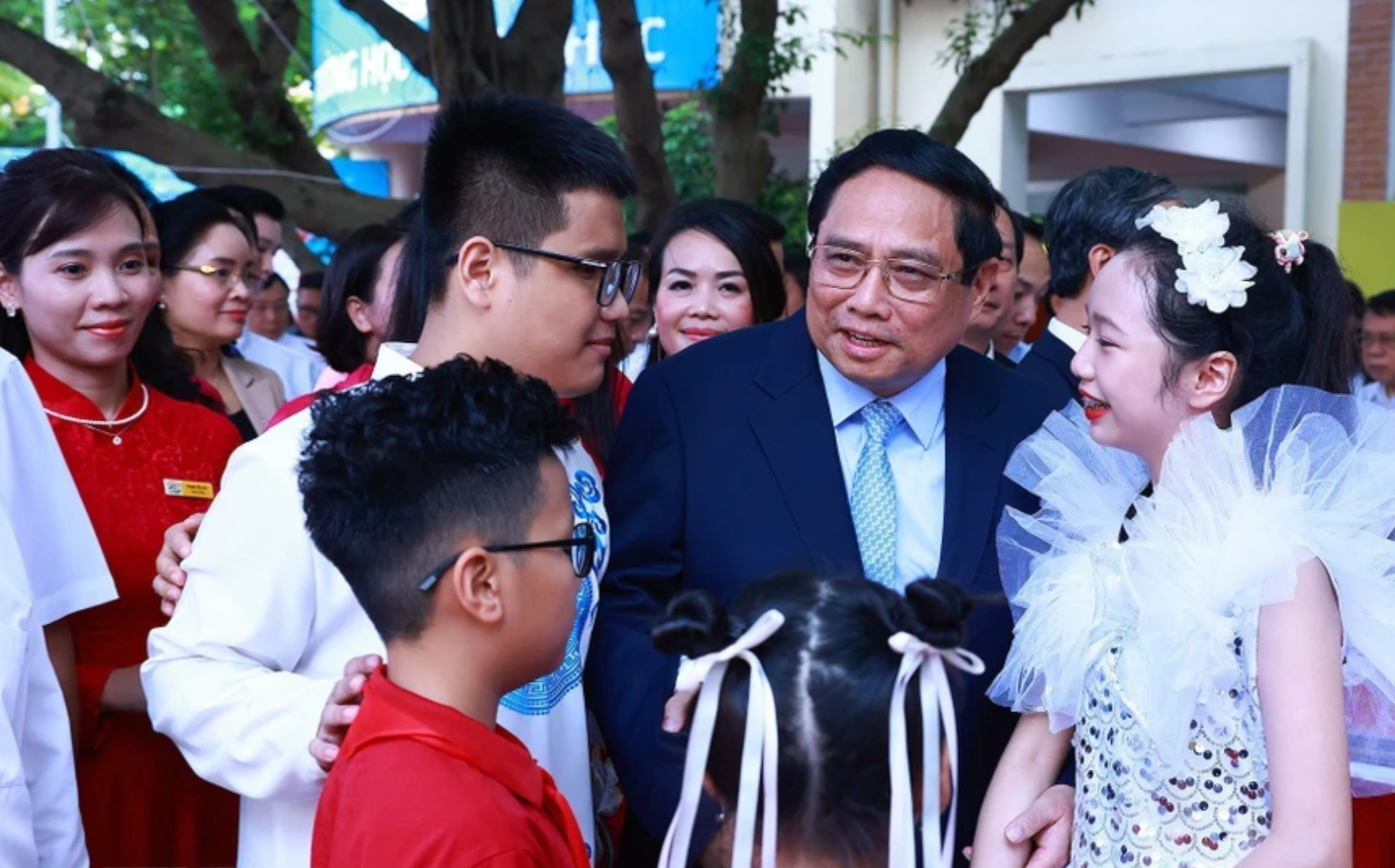Sáng nay, Thủ tướng Phạm Minh Chính dự lễ khai giảng năm học 2024-2025 tại trường Phổ thông Cơ sở Nguyễn Đình Chiểu, Hà Nội. (Ảnh: TTXVN)