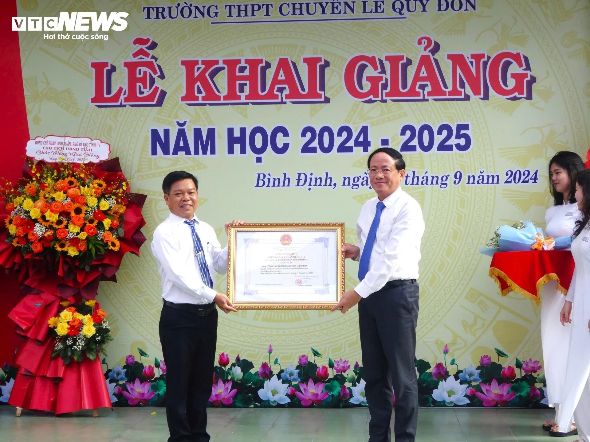 Chủ tịch UBND tỉnh Bình Định Phạm Anh Tuấn cùng các đồng chí lãnh đạo UBND tỉnh đã đi tham dự và trao bằng trường đạt chuẩn quốc gia cho các trường trên địa bàn tỉnh.