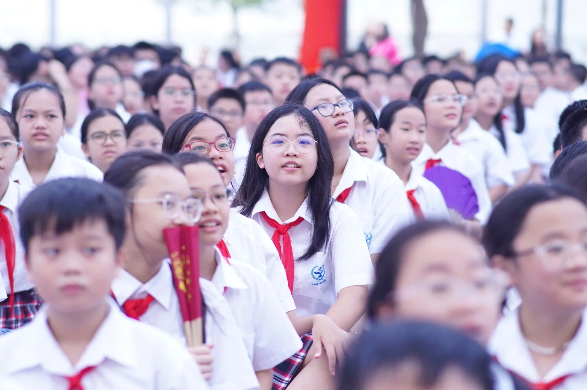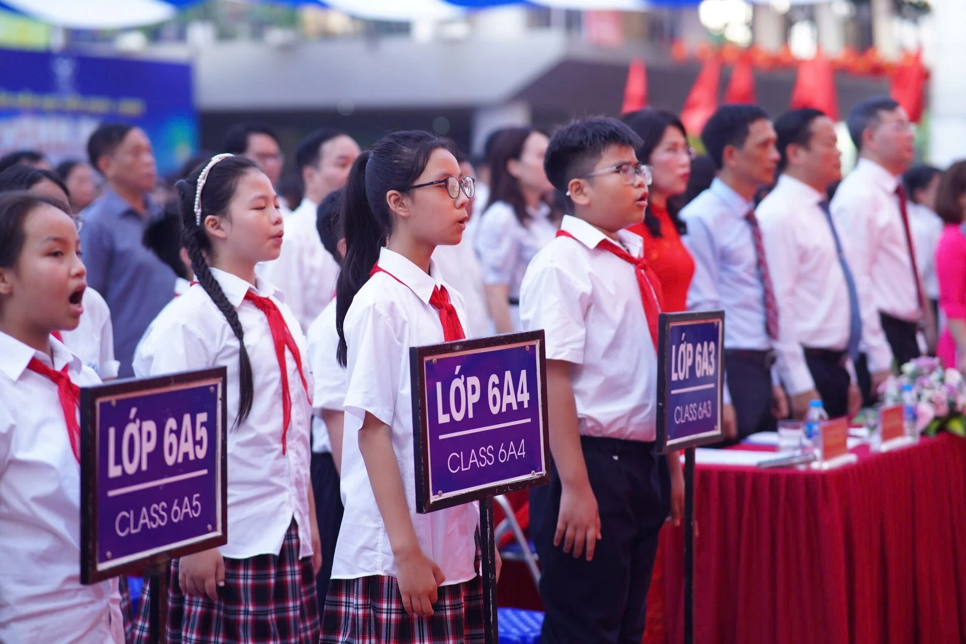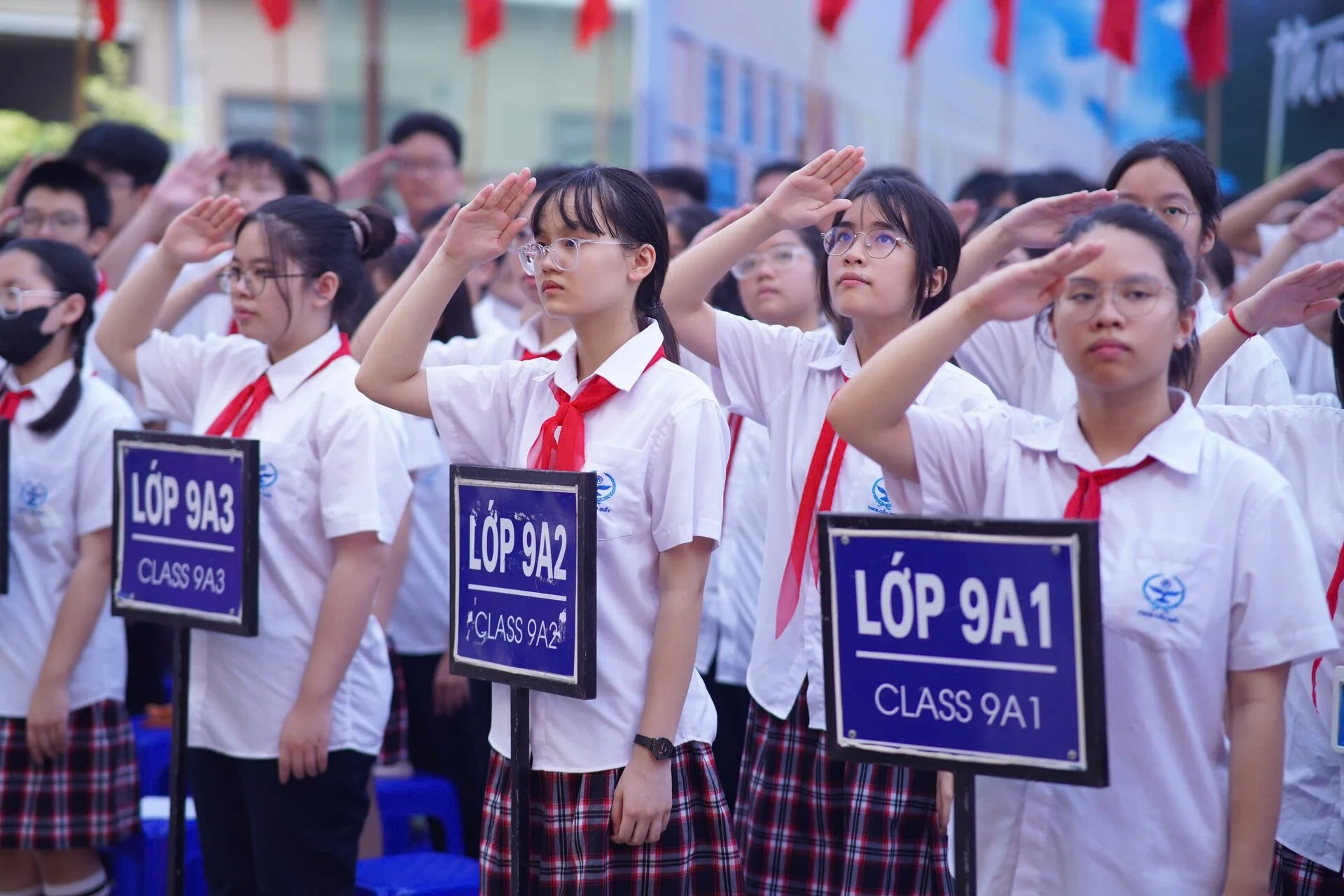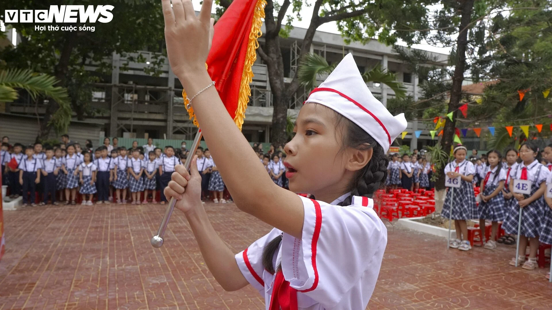 Học sinh trường THCS Cầu Giấy (Hà Nội) hát vang bài Quốc ca chào đón năm học mới 2024 - 2025.