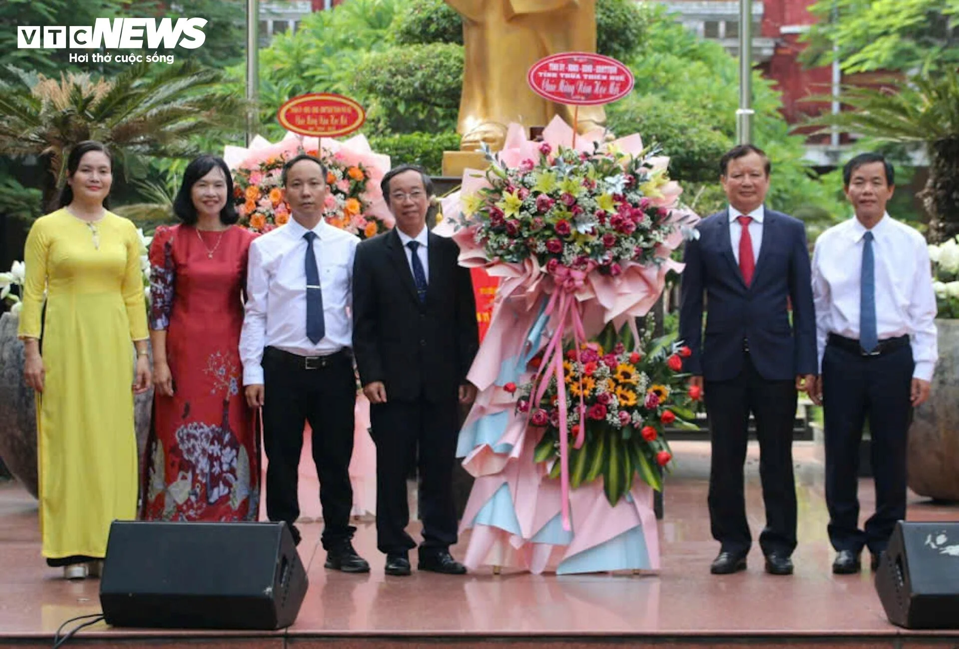 Ông Lê Trường Lưu - Bí thư Tỉnh uỷ và ông Nguyễn Văn Phương - Chủ tịch UBND tỉnh Thừa Thiên - Huế đến tặng hoa và dự khai giảng tại trường THPT chuyên Quốc học Huế.
