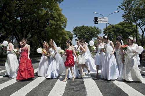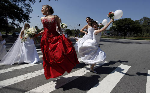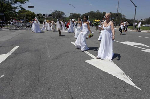 Hơn 40 cô dâu tương lai và một số đã lấy chồng, cùng nhau tham gia một sự kiện cô dâu diễu hành tập thể đầu tiên tại Brazil. Với khẩu hiệu chính “Hãy là cô dâu trong hơn một ngày”, những người tham gia muốn ghi dấu ấn sâu sắc hơn với thời khắc lên xe hoa. Một số người đã bước qua thời làm dâu cũng hãnh diện mặc lại những chiếc váy cưới trắng và tới cổ vũ cho các cô dâu tương lai.
