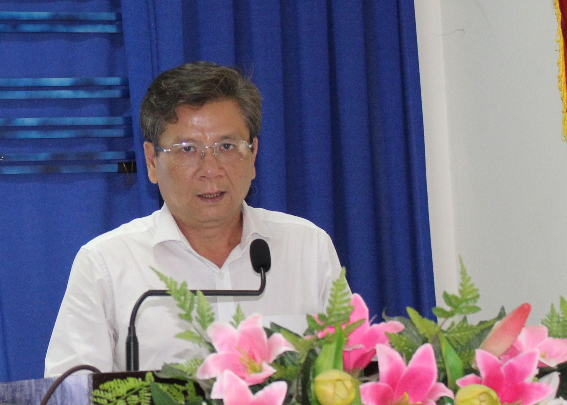 Ông Nguyễn Tấn Tài – Giám đốc Sở GTVT – Phó ban thường trực Ban an toàn giao thông tỉnh phát biểu tại hội nghị.