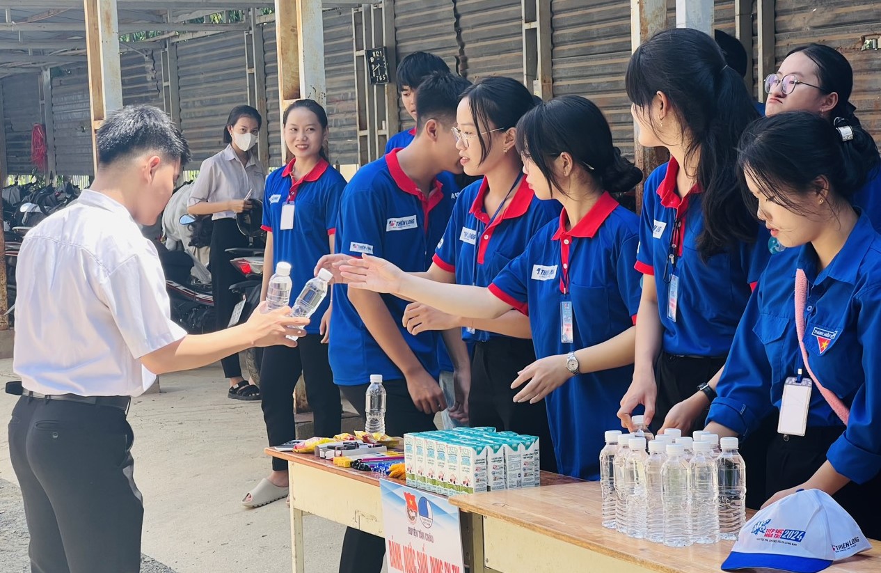 Đoàn viên thanh niên tiếp sức mùa thi tại điểm trường THCS Thị Trấn.