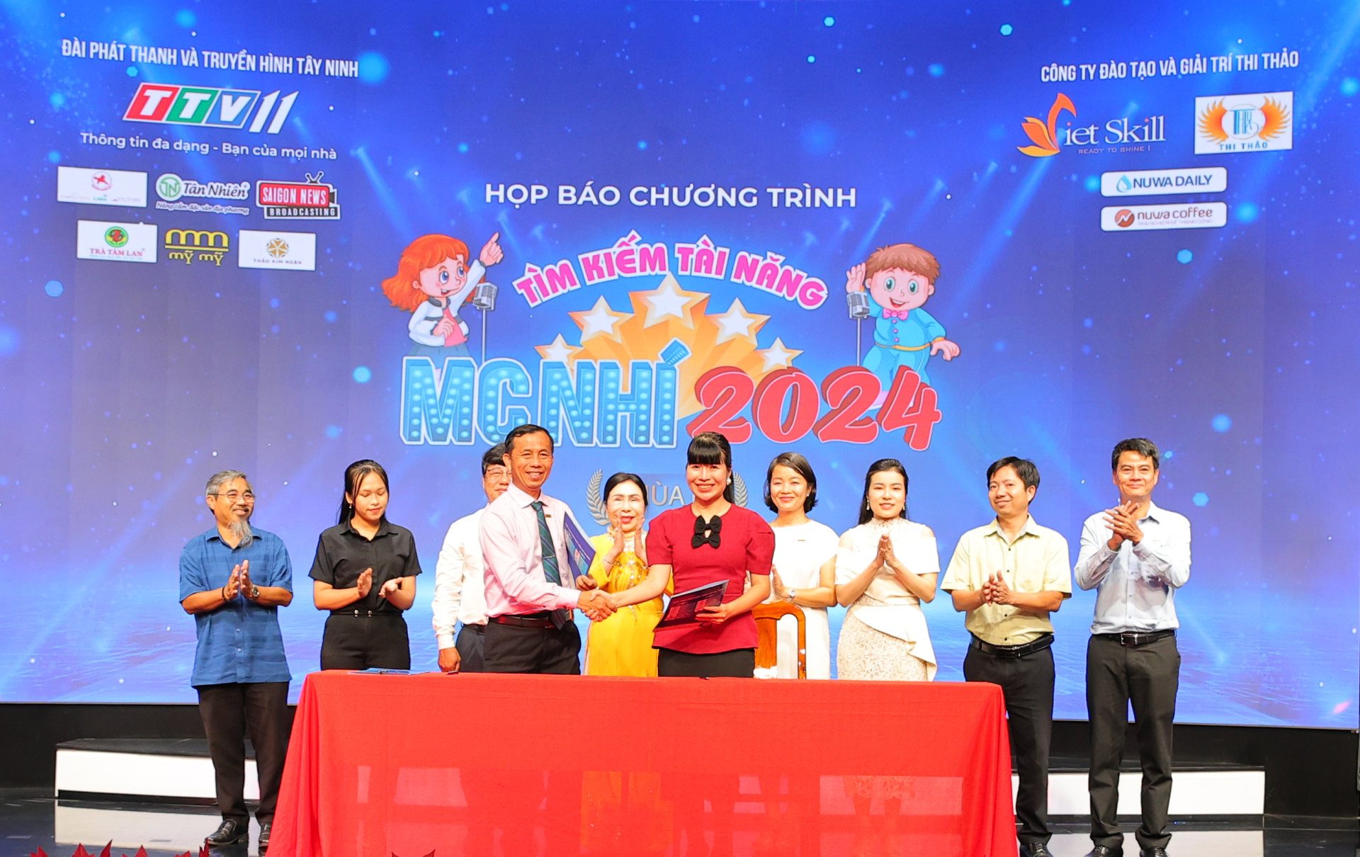 Tại buổi họp báo, Đài PT-TH Tây Ninh, Công ty TNHH Đào tạo và Giải trí Thi Thảo (thương hiệu Vietskill) tiến hành ký kết hợp tác tổ chức chương trình “Tìm kiếm tài năng MC nhí” mùa 6 năm 2024, cùng các nội dung, tiêu chí đã được thống nhất.