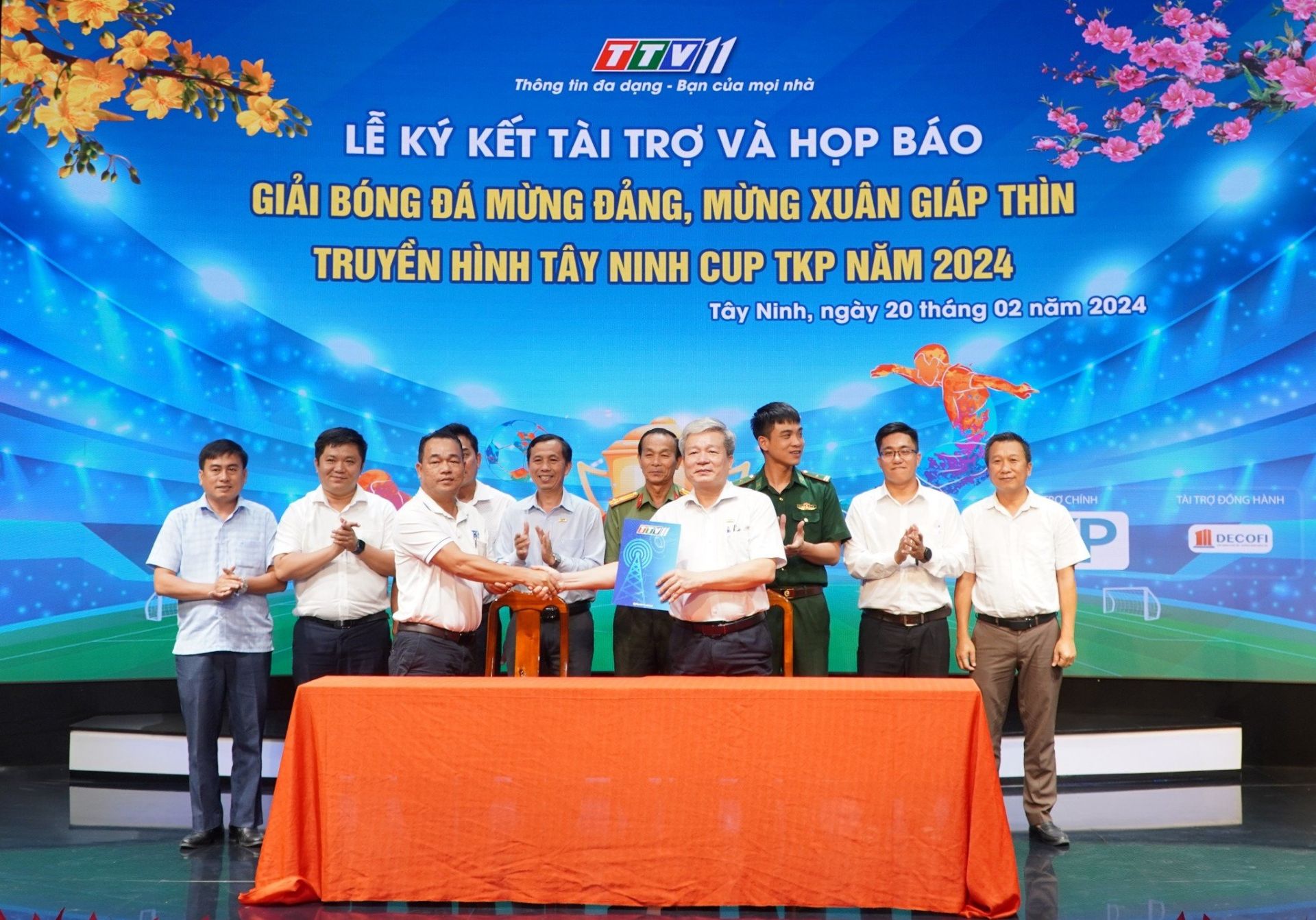 Lãnh đạo Đài PT-TH Tây Ninh và các đơn vị ký kết tài trợ giải.