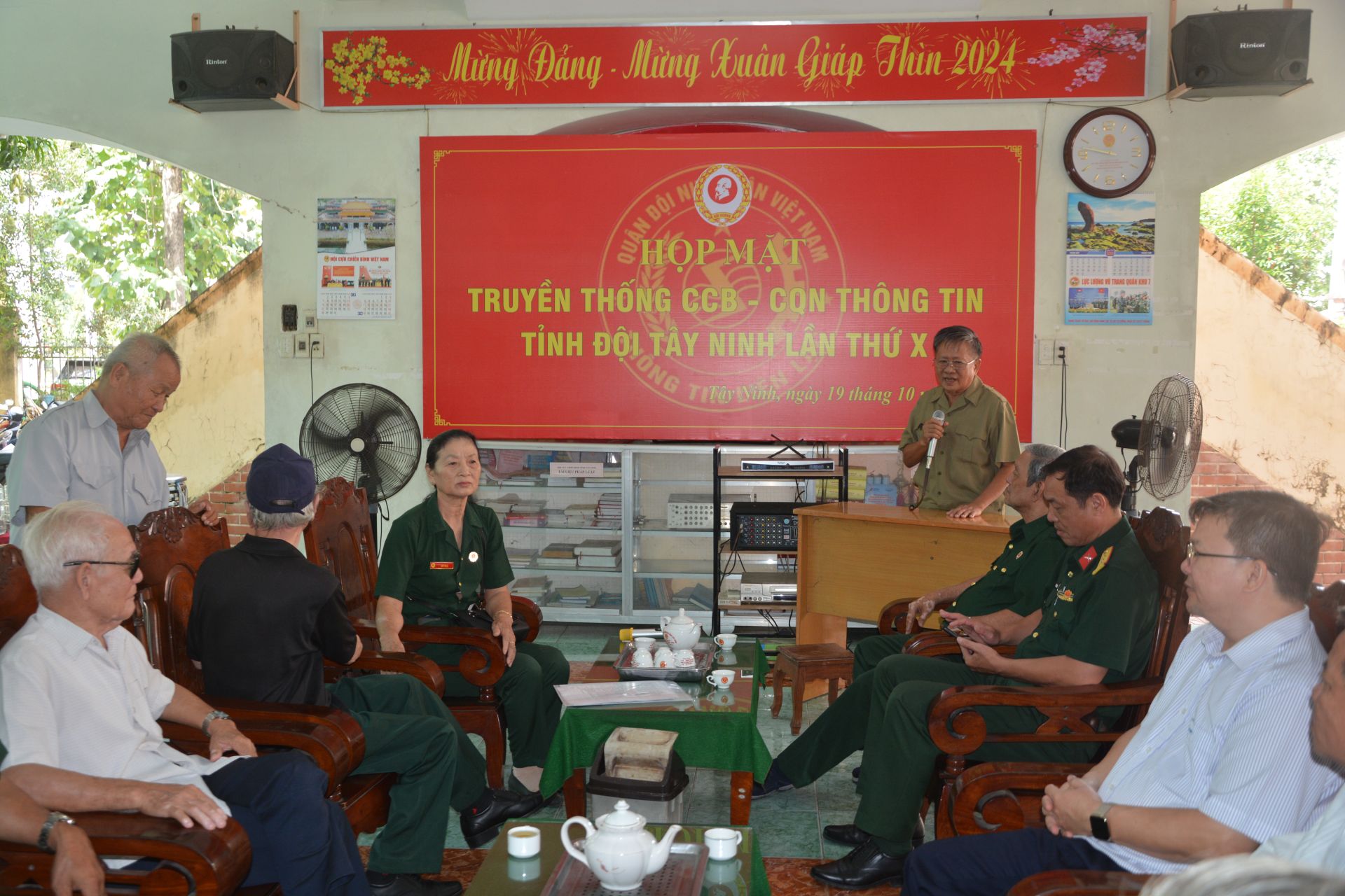 Ngày 19.10, Ban Liên lạc truyền thống Cựu chiến binh (CCB) Thông tin tỉnh Tây Ninh tổ chức họp mặt lần thứ X năm 2024. Đến dự có Thượng tá Trần Văn Toàn- Phó Chủ nhiệm chính trị Bộ CHQS tỉnh và trên 100 cán bộ, hội viên Ban Liên lạc.